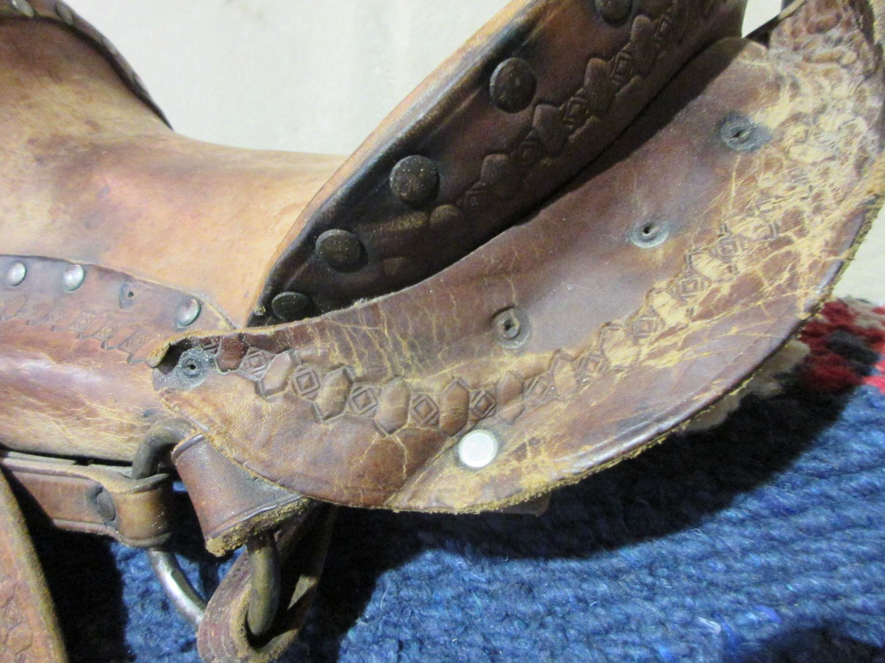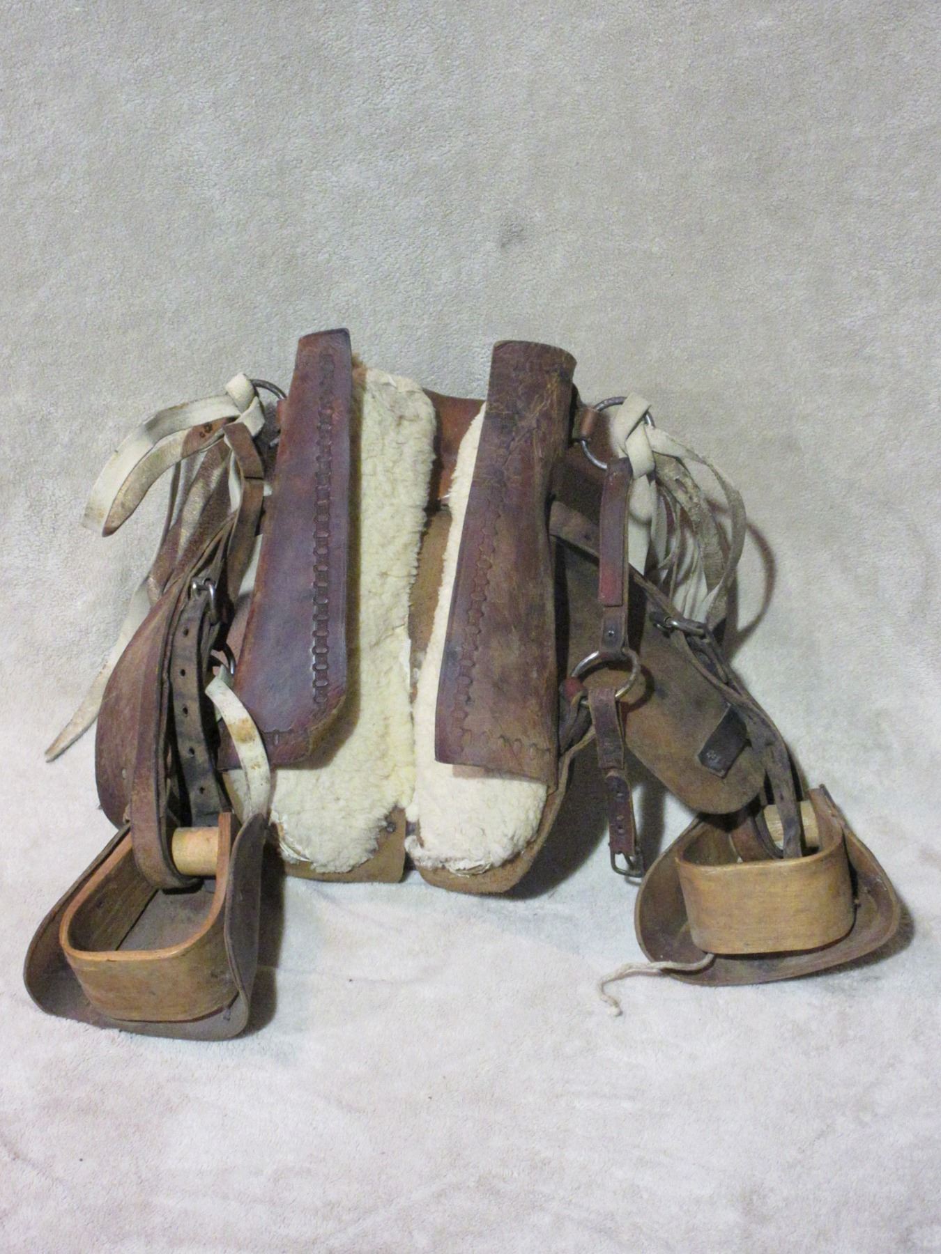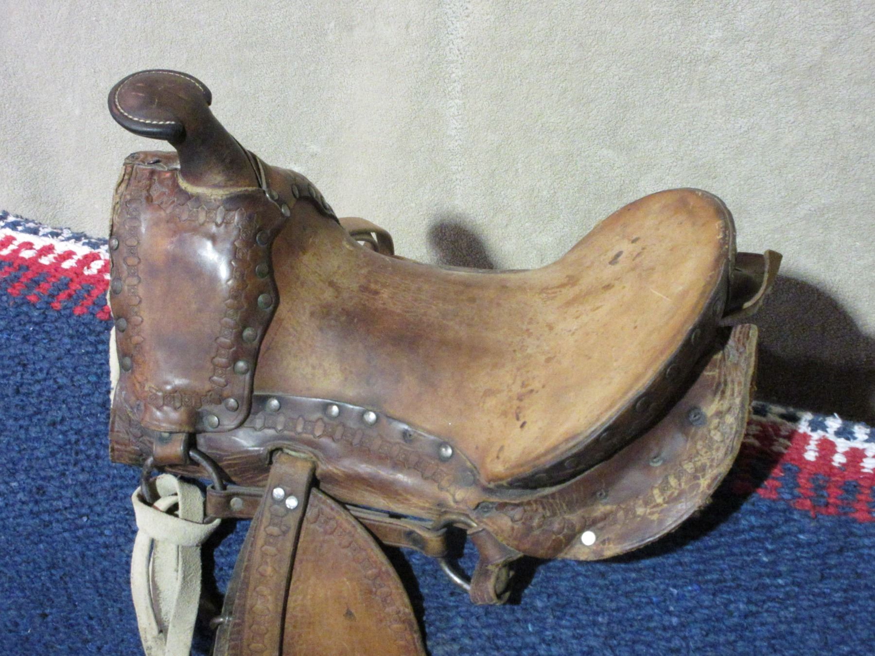 Unmarked Kids Saddle- All Original- 10.5" Seat- Tapaderos- Minor Damage on 1 Skirt