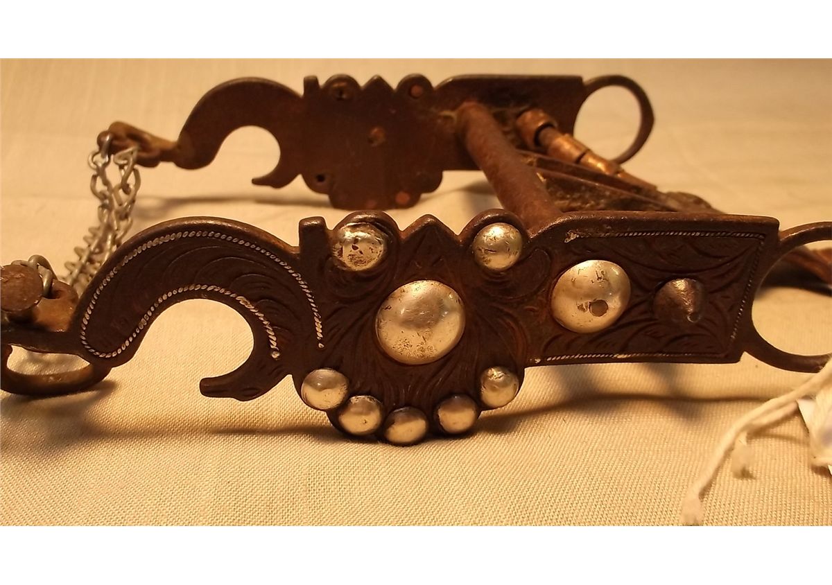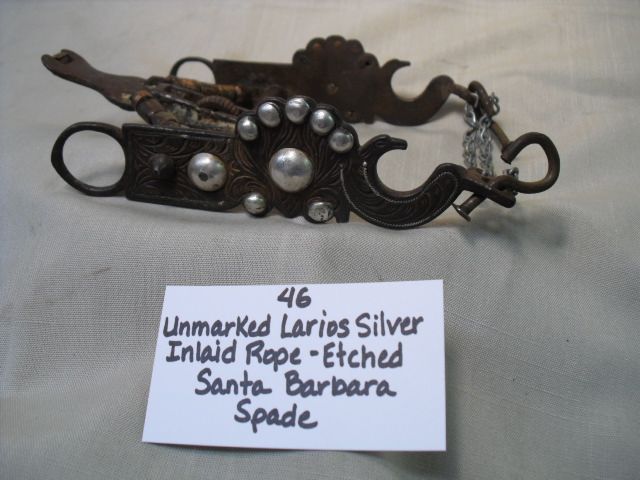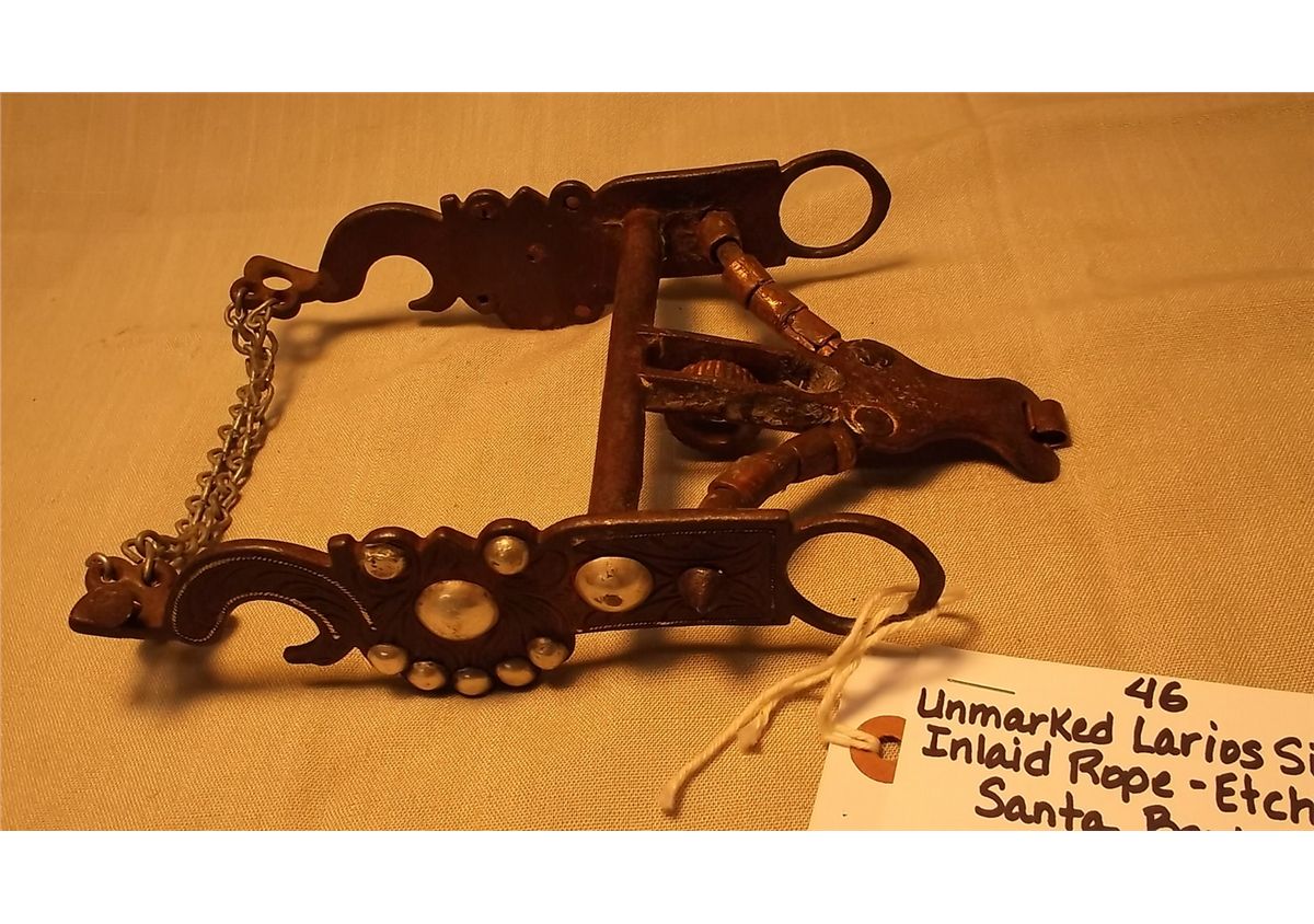 Unmarked-Larios Bit-Silver Inlaid Rope-Etched-Santa Barbara-spade