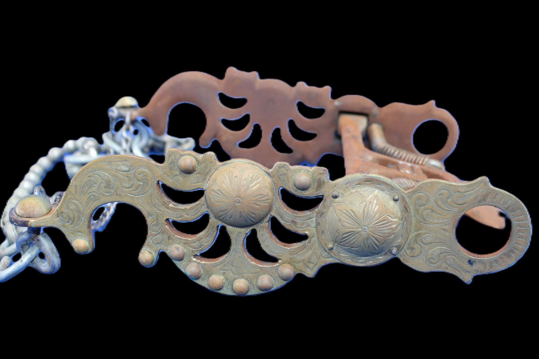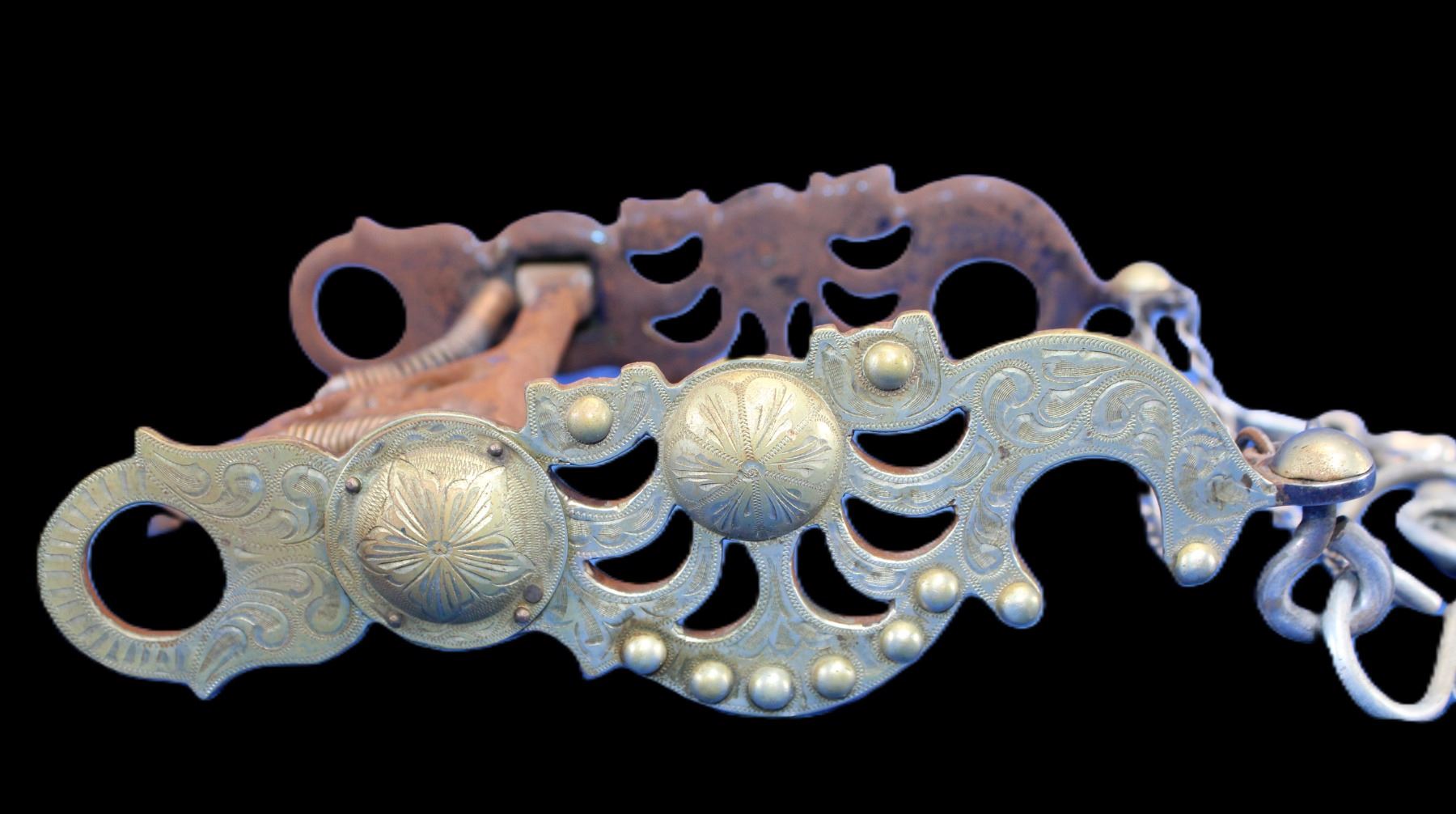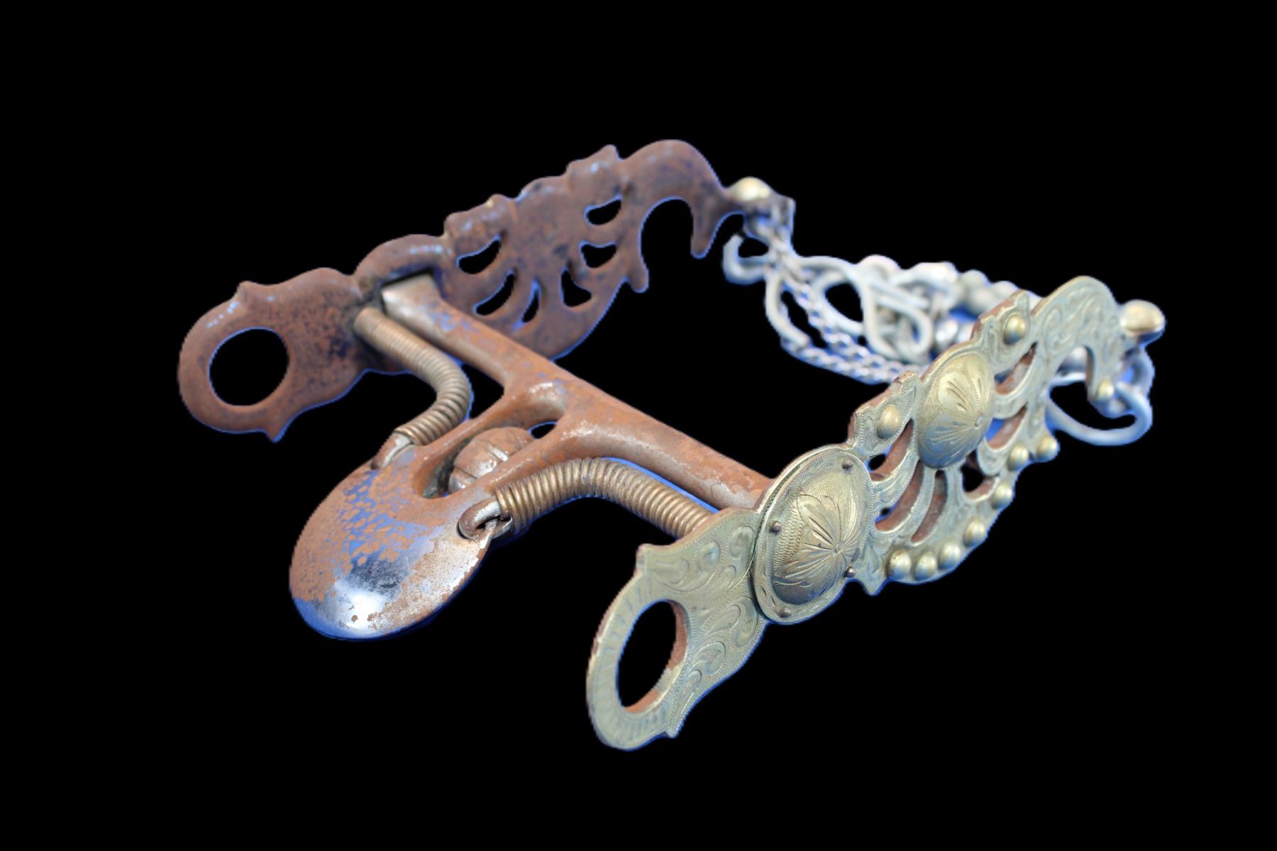 Unmarked Overlaid Spoon Bit- Santa Barbara Style Cheek- Double Slobber Chains- Ball Rein Chains- Fair Condition