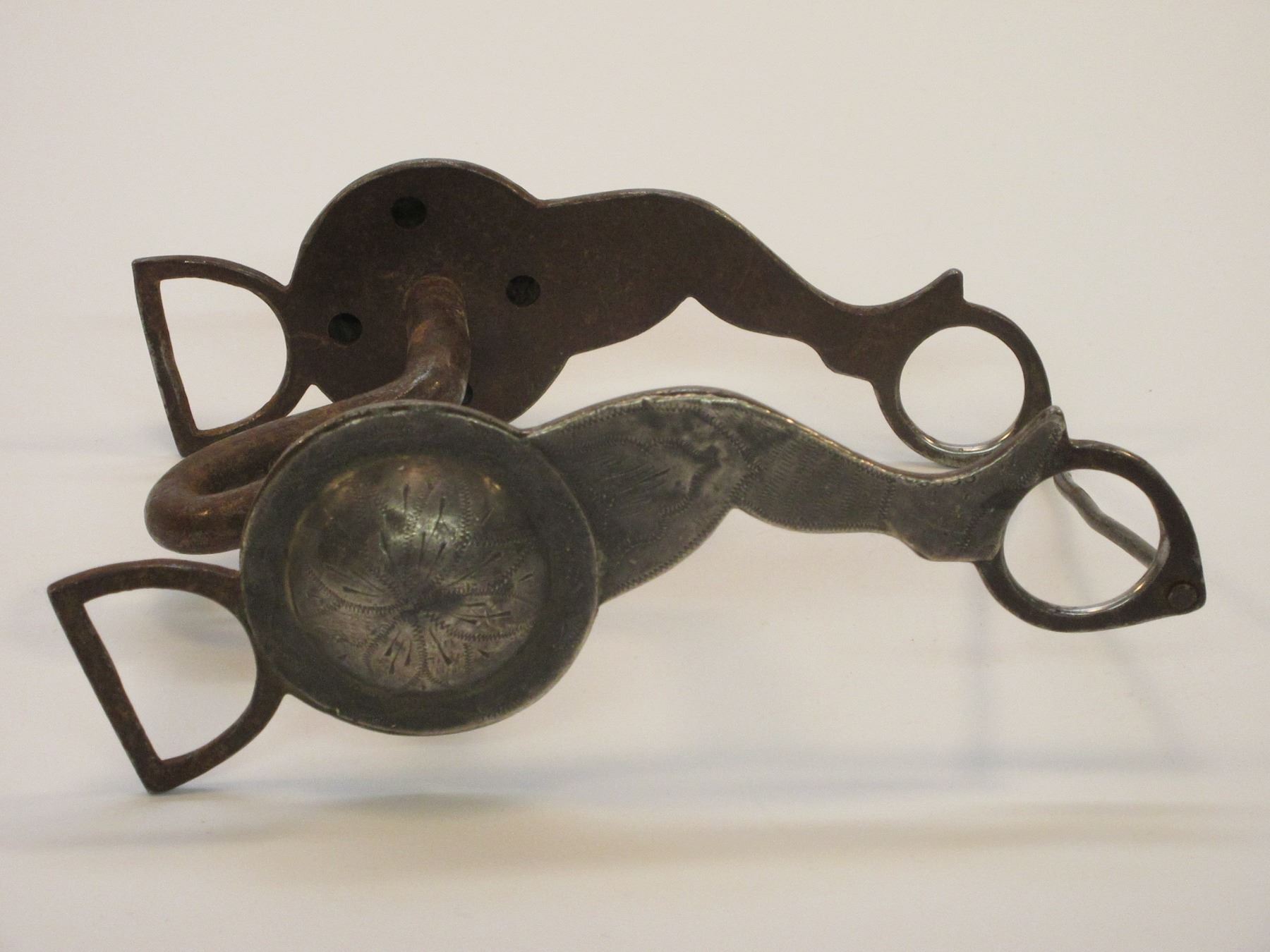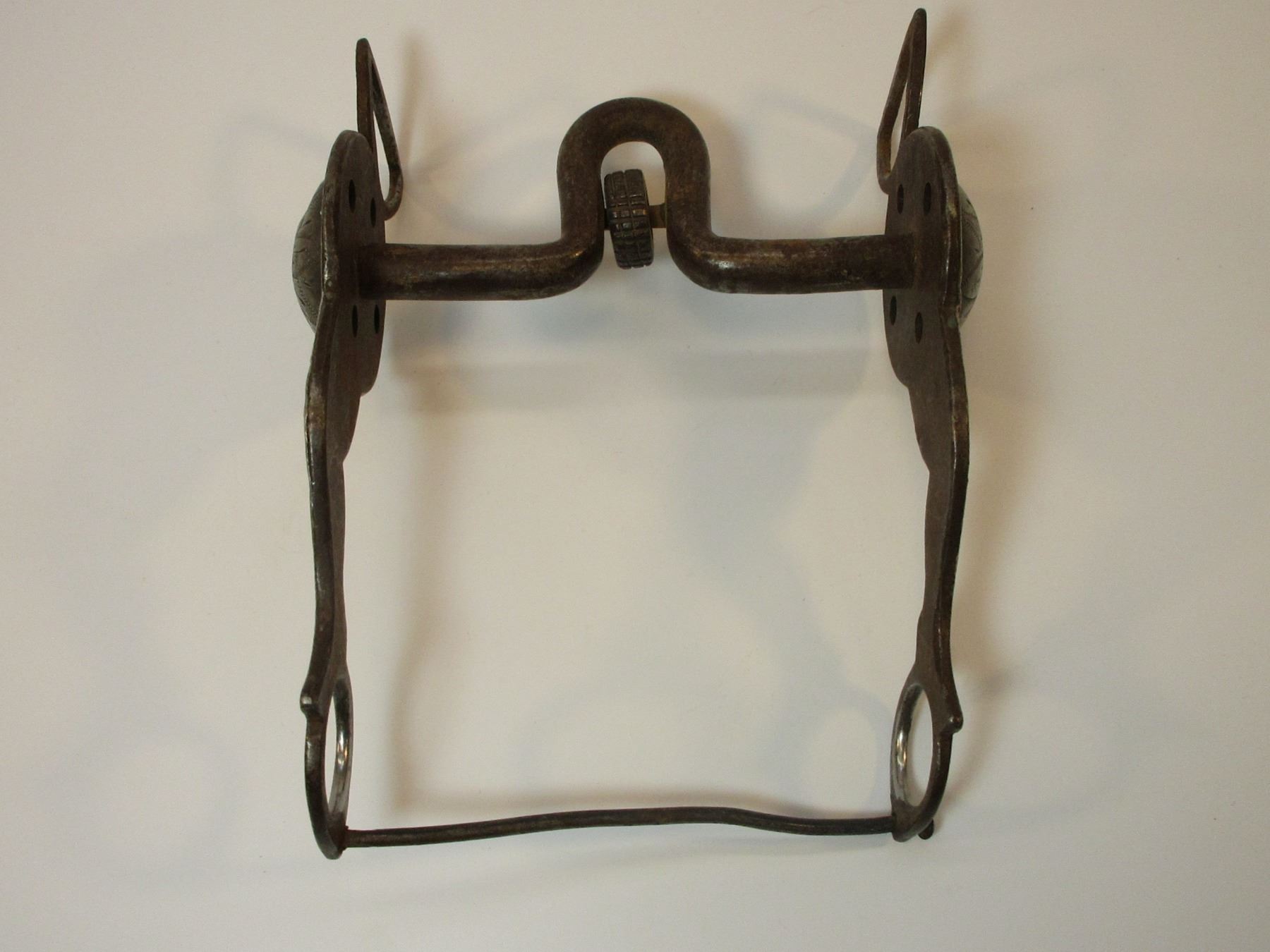 Unmarked RM Hall Silver Overlaid Bit- Lady Legs Cheek Halfbreed Mouth- 2.5" Domed Conchos- Slobber Bar With Minor Damage