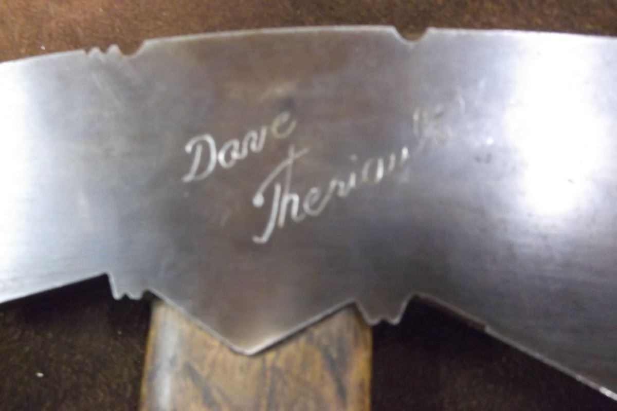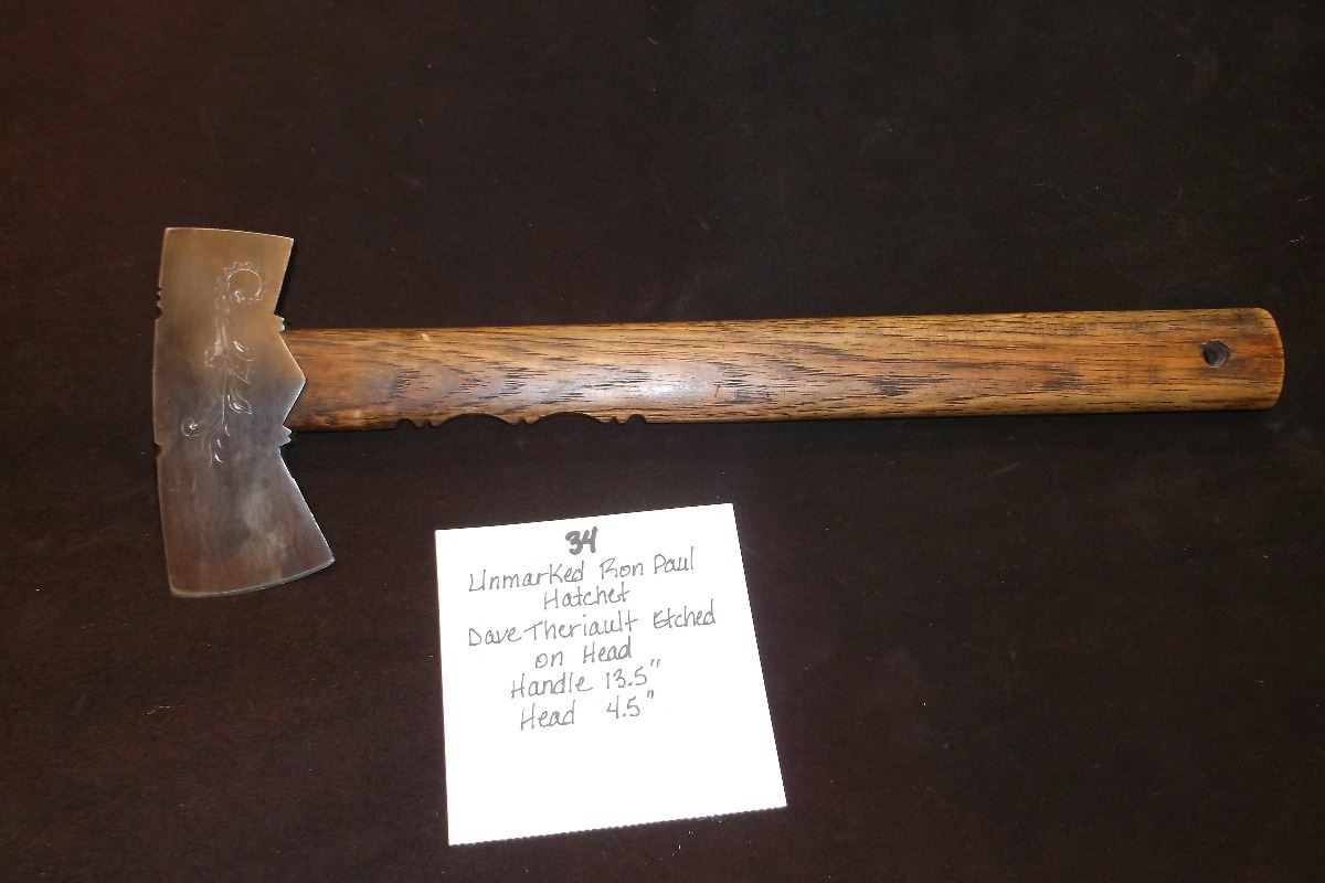 Unmarked Ron Paul Hatchet- Dave Theriault Etched on Head- Handle 13.5"- Head 4.5"