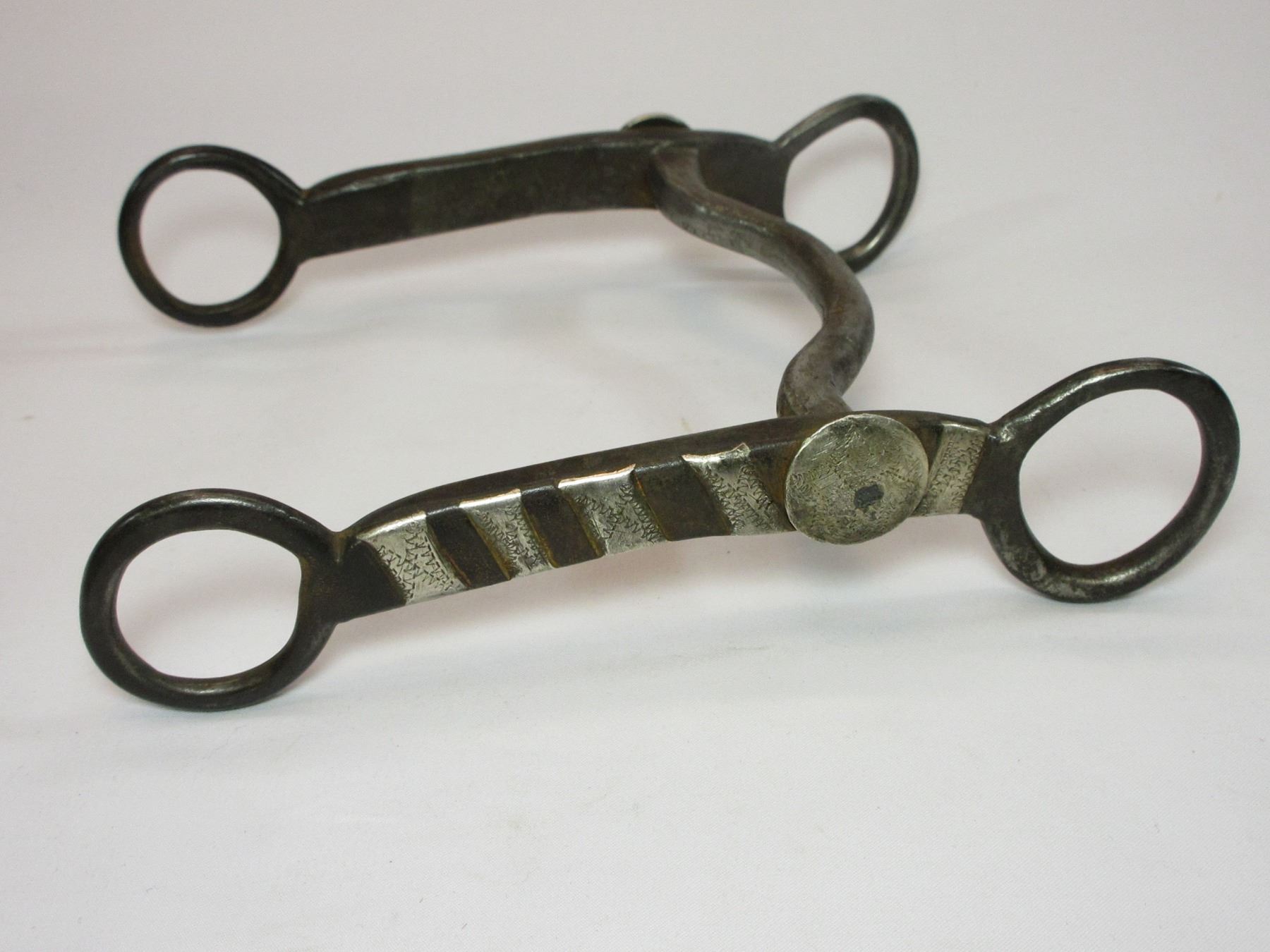 Unmarked Schnitger Silver Inlaid Bit- Straight Shank Grazing Mouth- Typical Schnitger Heavy Duty Bit