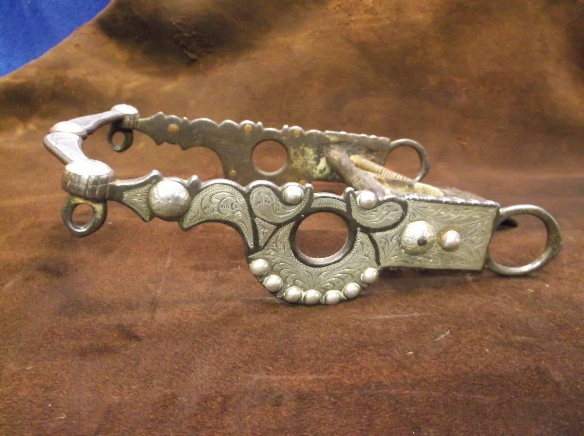 Unmarked Silver Inlaid Bit, Santa Barbara Cheek, Spade Mouth, Slobber Bar