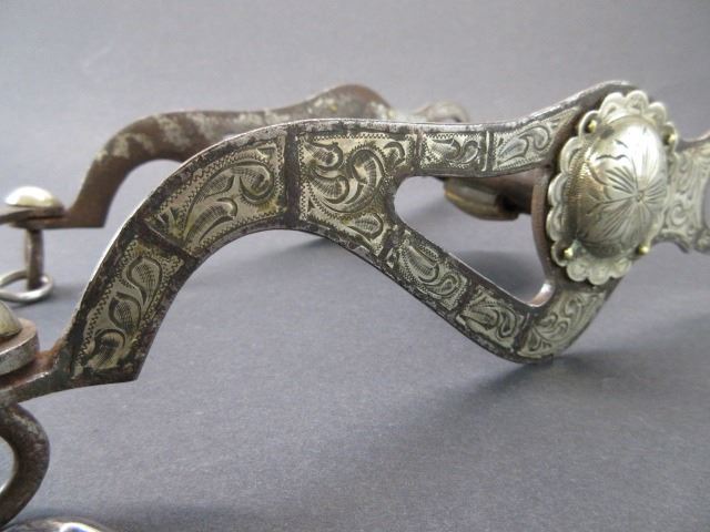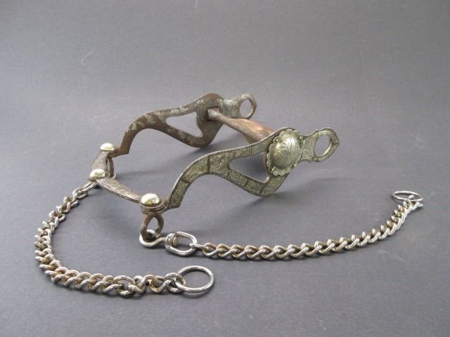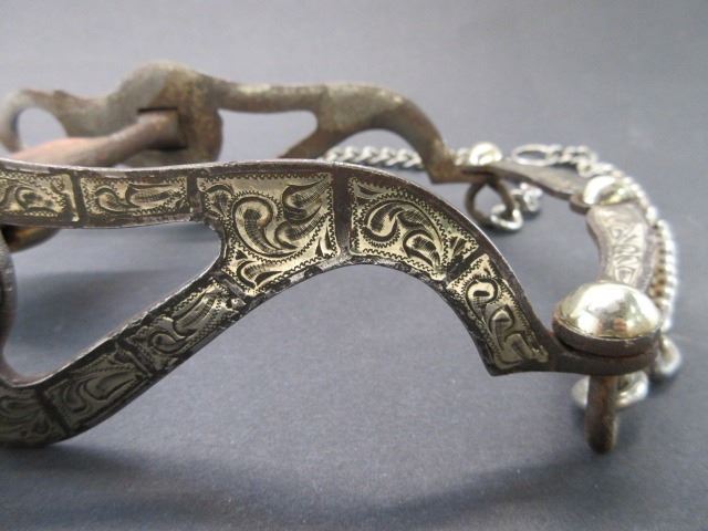 Unmarked Silver Inlaid Bit- Santa Maria Cheek San Joaquin Mouth- Slobber Bar- Rein Chains