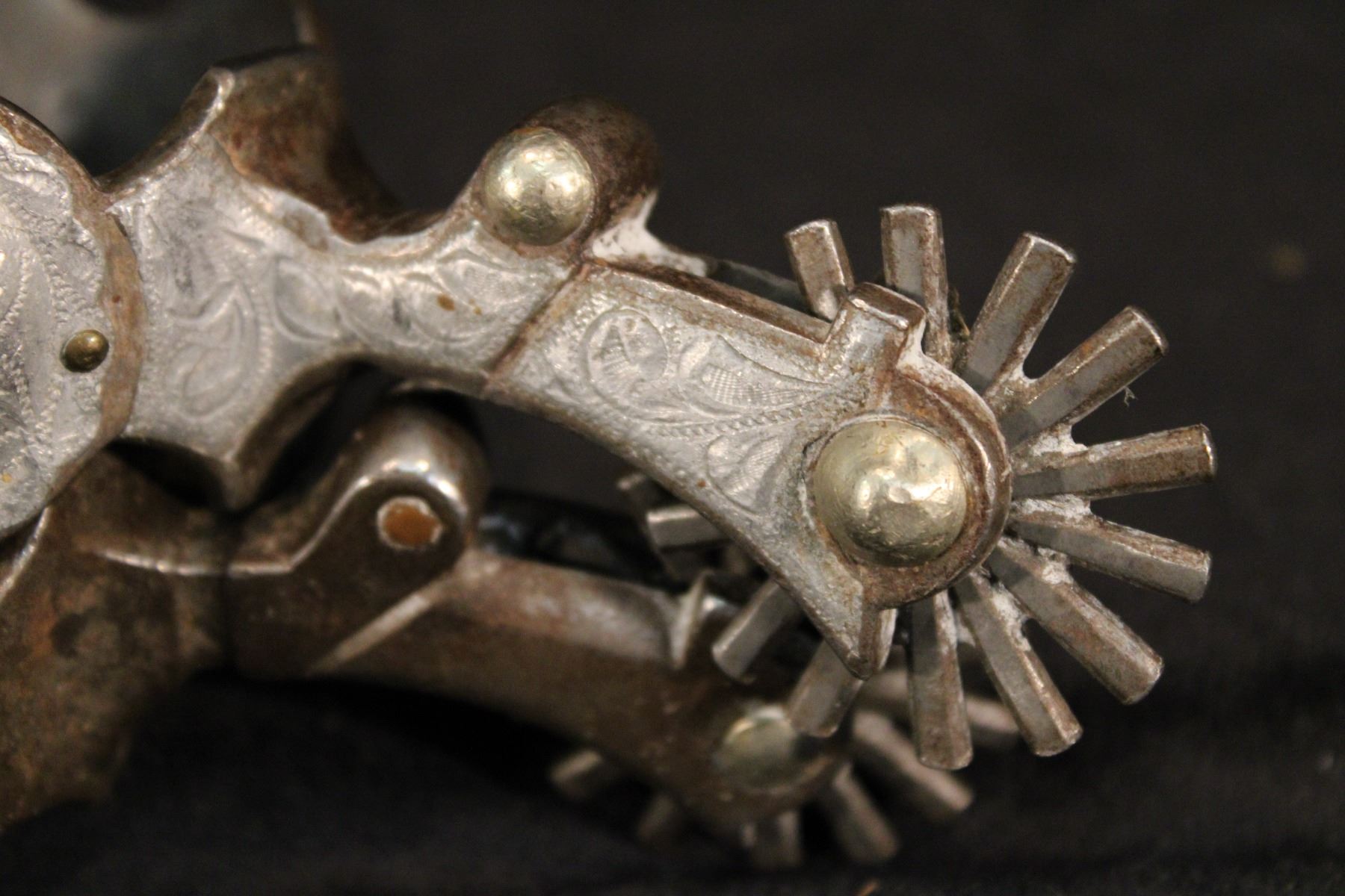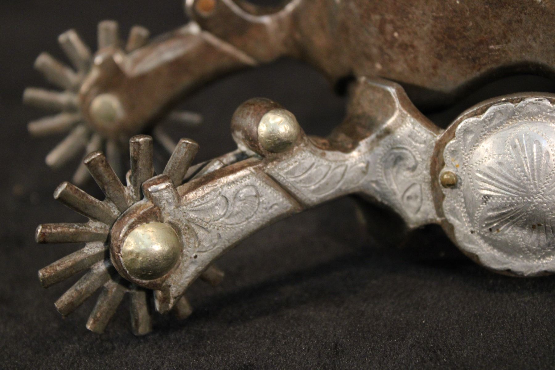 Owned by Brett Zollinger, PRCA pickup man, Brett broke his leg wearing these when a bronc's tack got hung up on these spurs