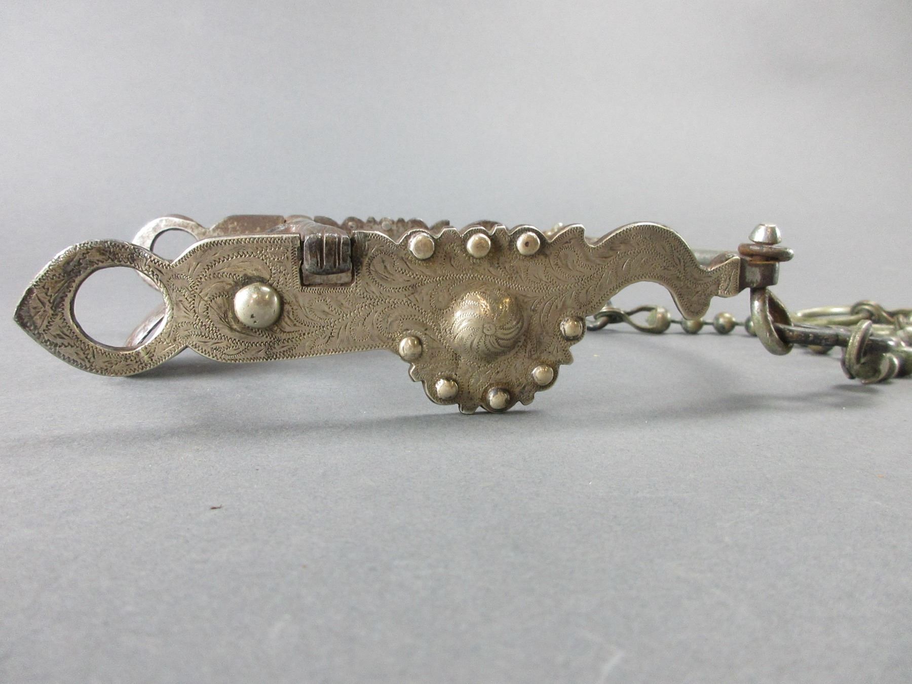 Unmarked Silver Overlaid Loose Jaw Bit- Carmel Cheek- Spoon Mouth- Slobber Bar- Ball Rein Chains- Fair Condition