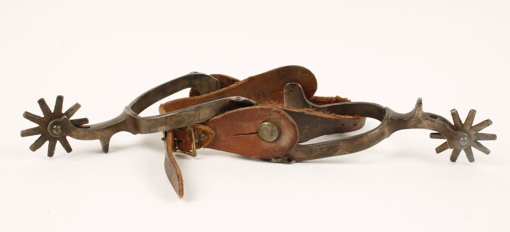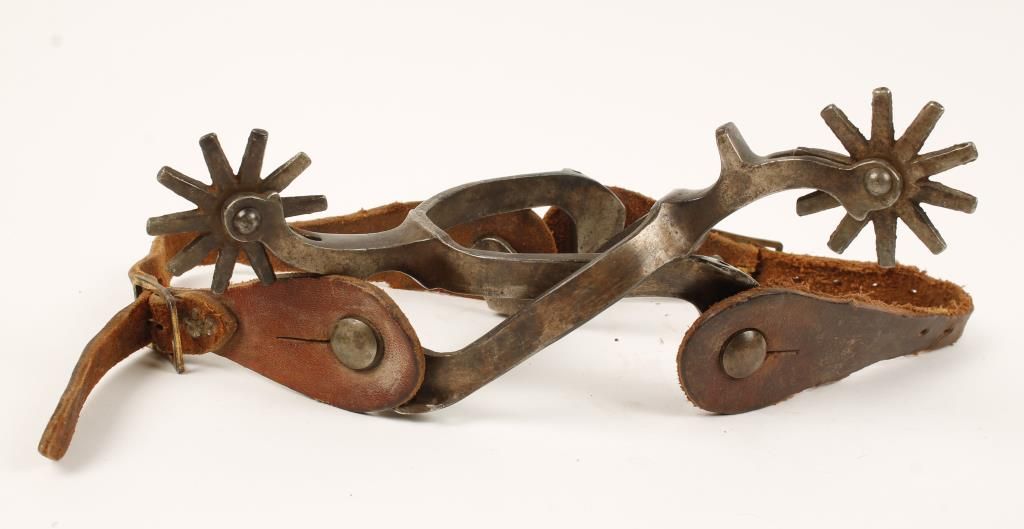 Unmarked Steel Spurs with Old Leather Straps