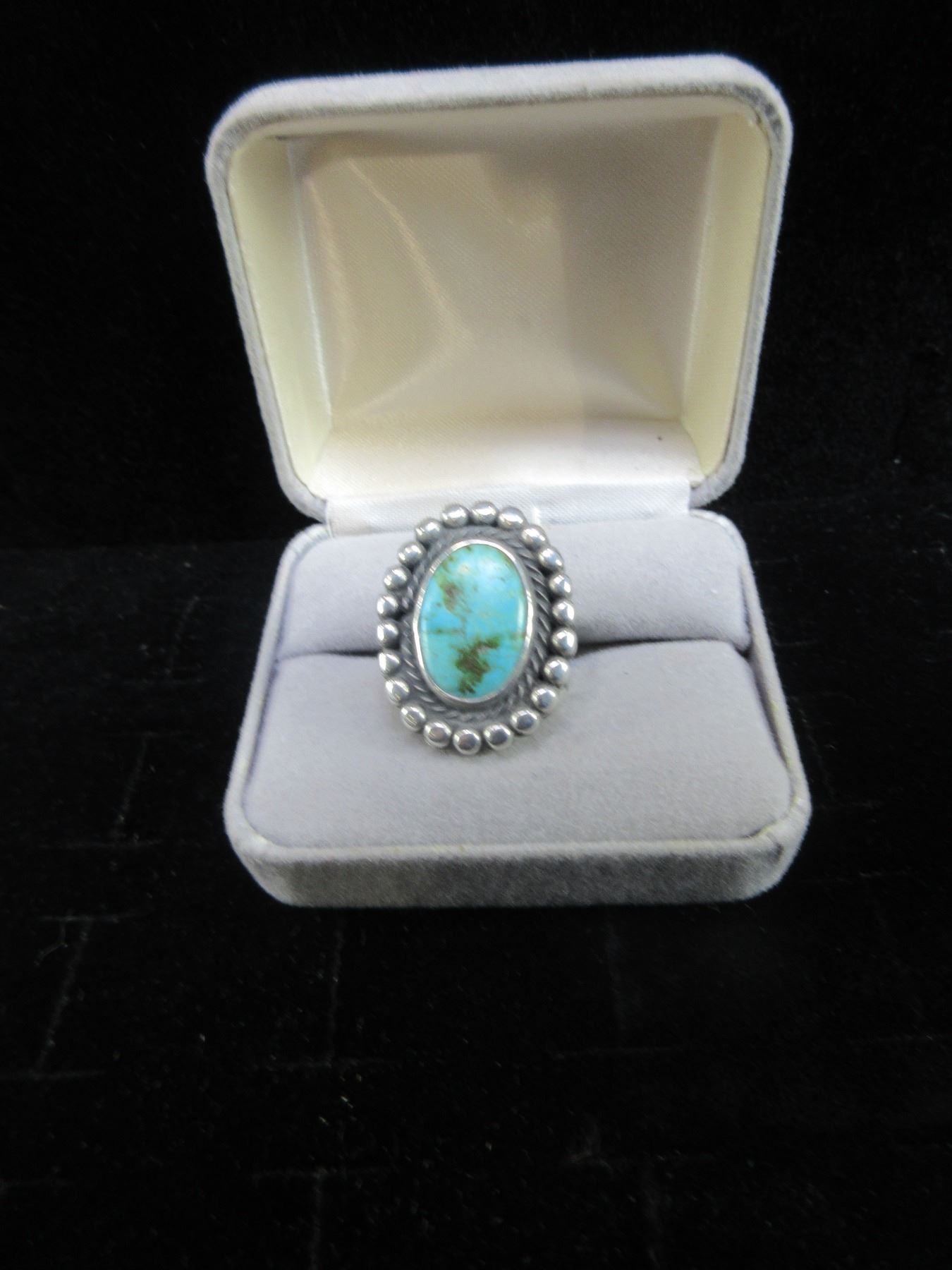 Unmarked Sterling And Turquise Ring Marked HV- Size 6.5