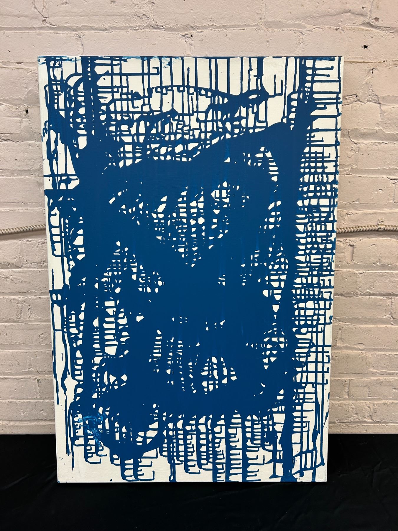 Unnamed Unsigned Lillian Austin Blue Drip Canvas Painting 2ft x 3ft