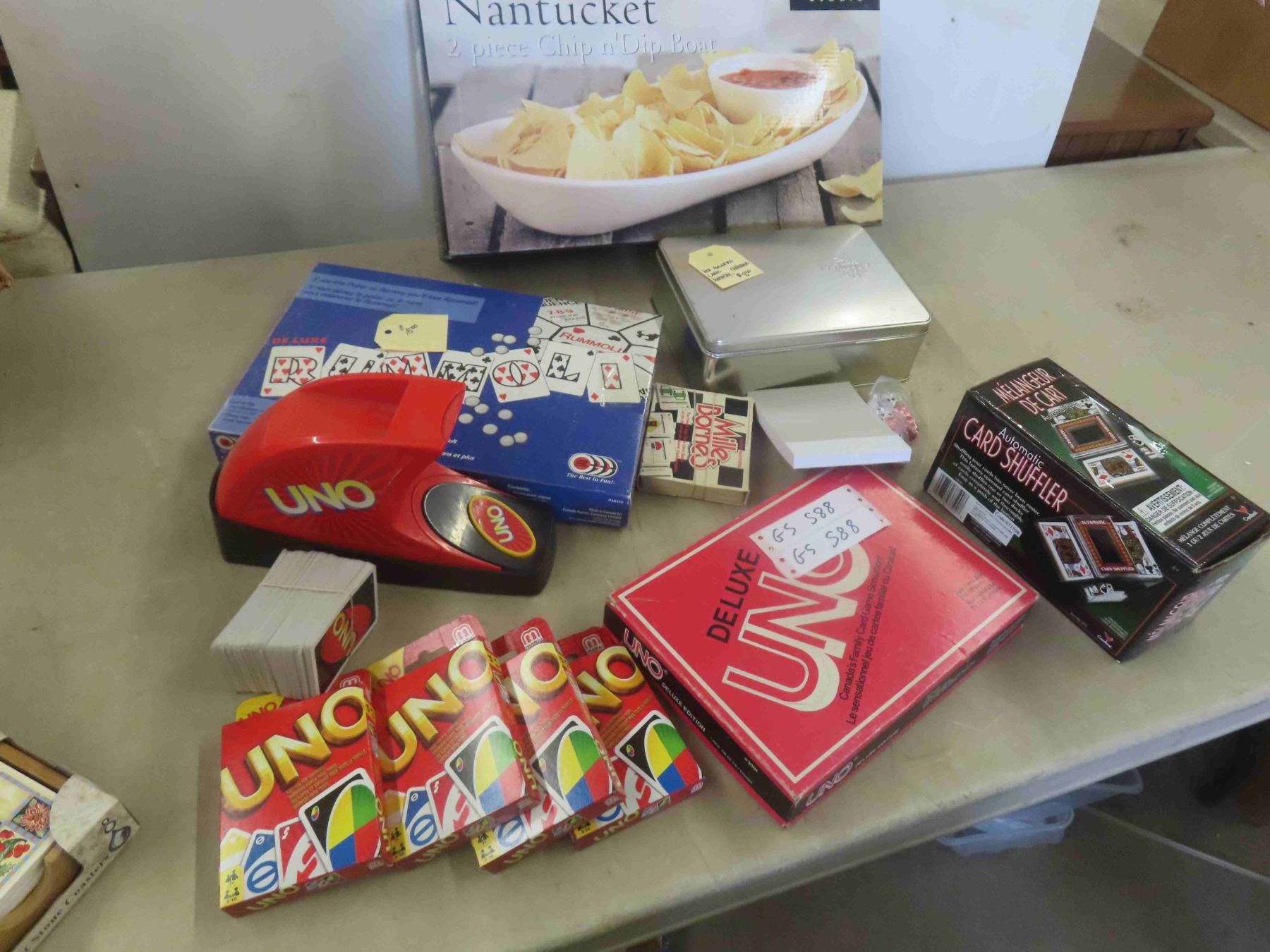 Uno , Card Shuffle, Chip n Dip Boat, Gift Cards