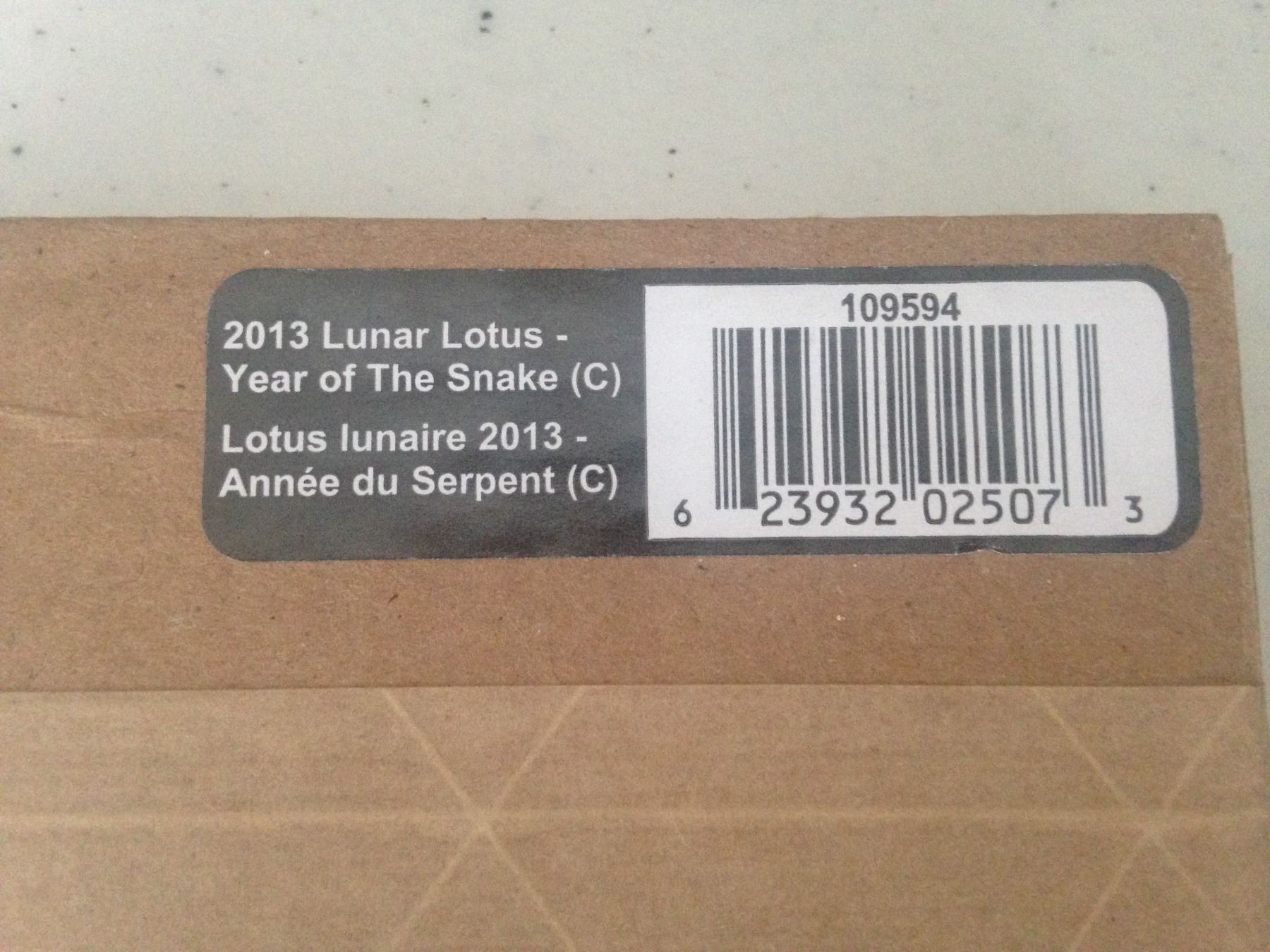 $15 Fine Silver Coin - Lunar Lotus -Year of the Snake (box unopened)