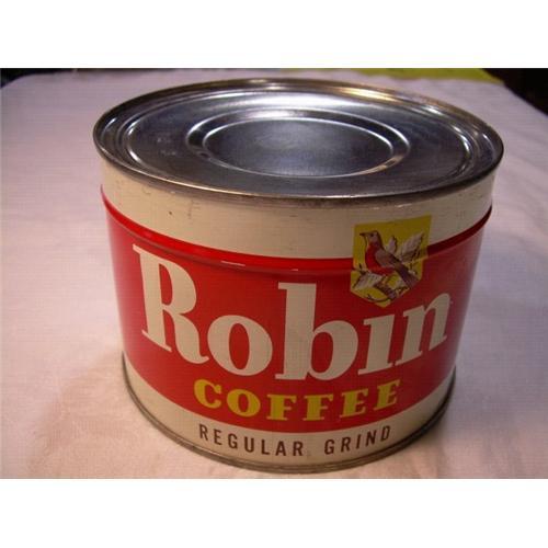 Up for sale is an unopened 1 lb net can of Robin Coffee, made by the General Coffee Co. of St. Louis, MO. Condition is very good; there are just a few scratches on the side of the can and just one tiny dent on the bottom (see photo). There is no rust on the can at all and the key is still included (on the bottom of the can). If you have any other questions, please email us. Thanks for looking!