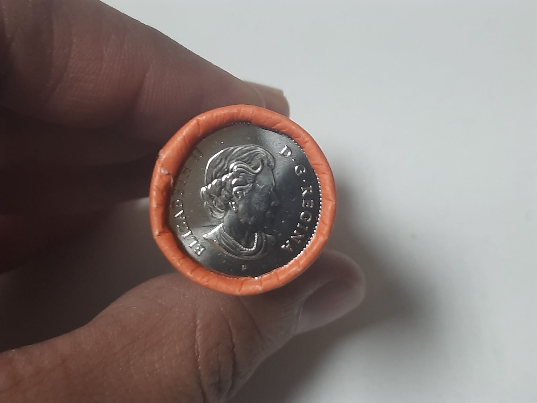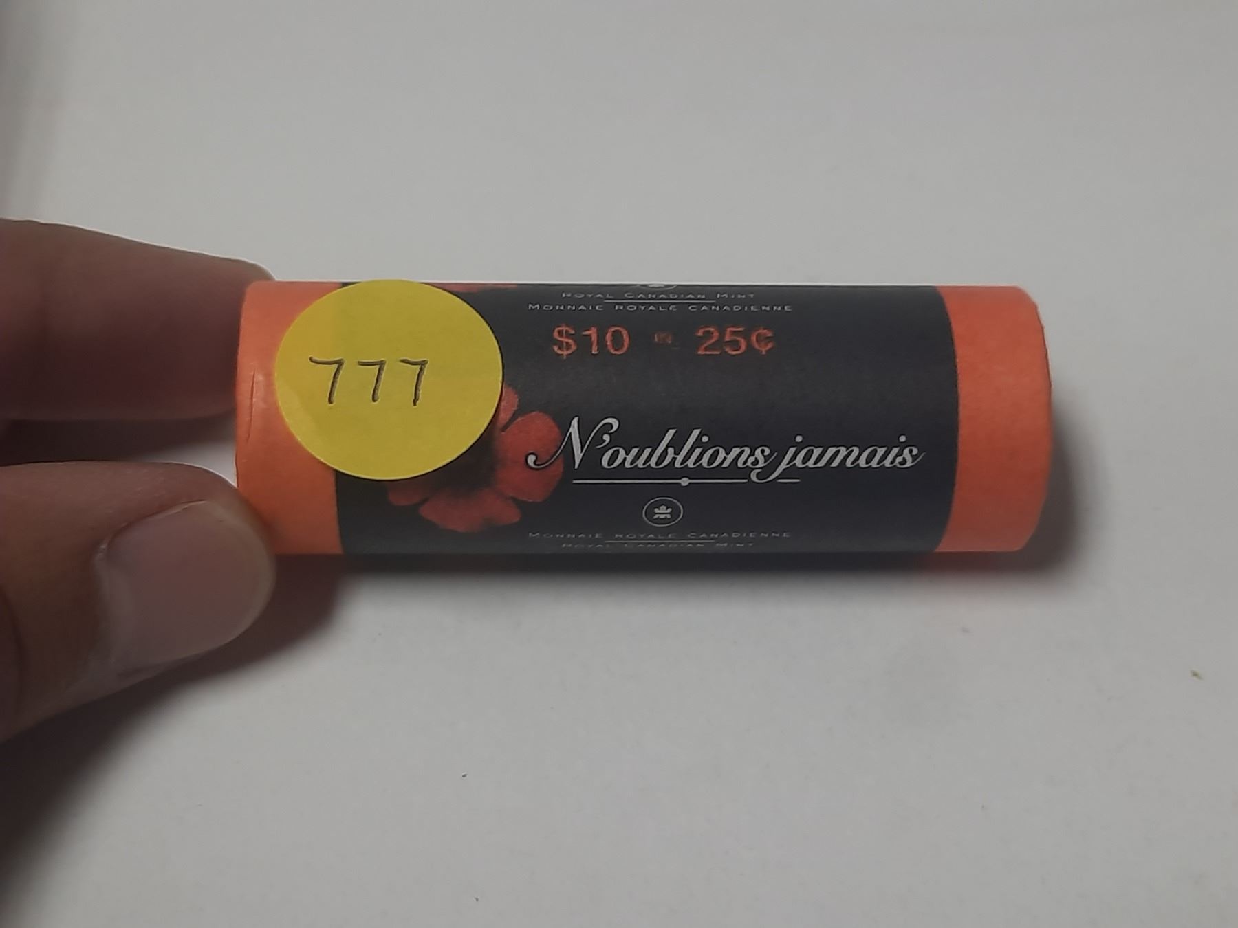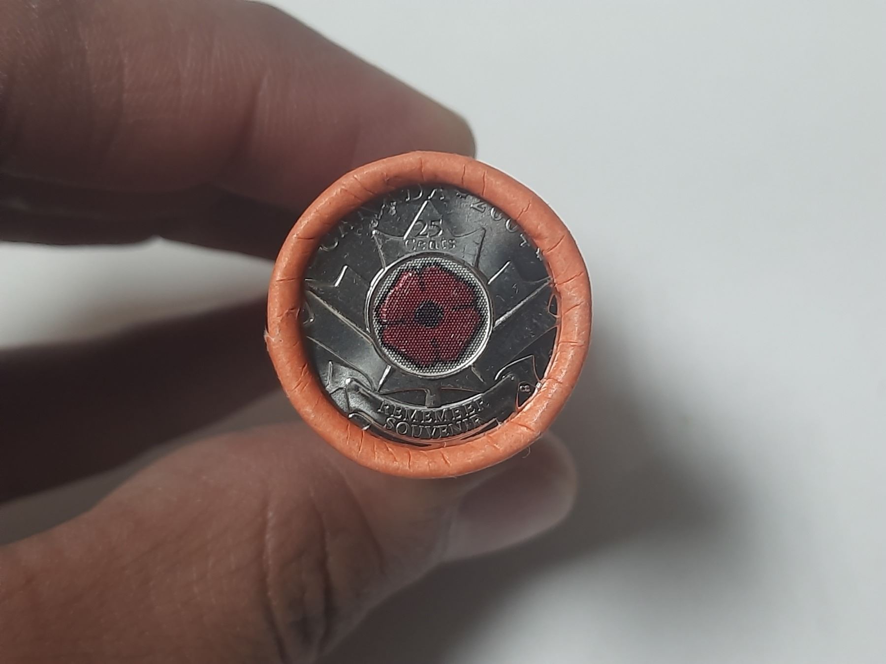 Unopened Roll of 40 2004P Canadian Remembrance Day Colourized Poppy 25 Cents. The first coloured Canadian circulating coin issued.