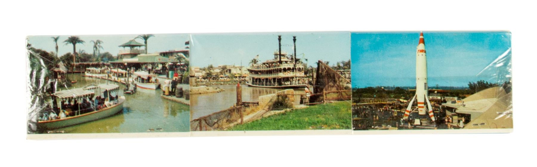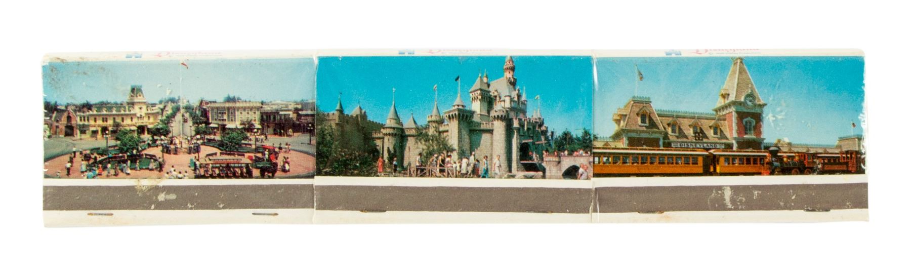 (Disneyland, c.1960) An unopened set of three matchbooks with color photos of Disneyland on both sides. The set measures 2"x9" and is in very good condition with some wear to the package.
