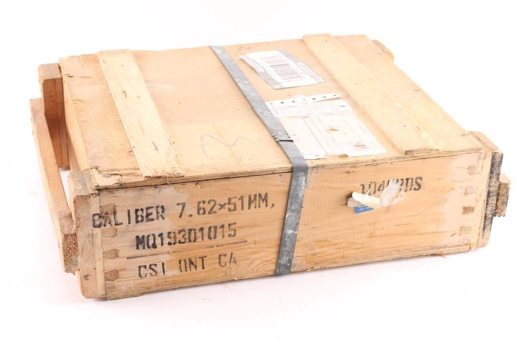 Approx. 1,040 rounds of 7.62 X 51mm factory new ammunition. Made in China by Norinco, sealed wooden ammo crate.