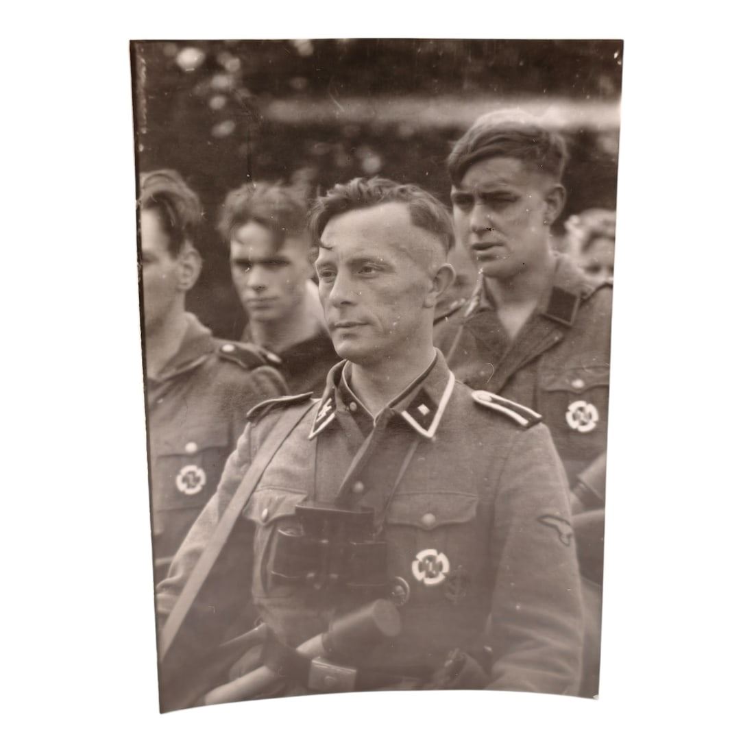 Unpublished Dutch Waffen SS Volunteer Legion Avegoor Training Center 1943 Photograph. Extremely rare unpublished photograph discovery from the Dutch Waffen SS training center in Avegoor, Netherlands. These photographs originate from the Dutch NSB fotodienst, the photograph department of the Dutch collaboration organization, National Socialist Movement during World War II. An NSB photographer traveled to the camp to photograph the Dutch volunteers during their training. Photos are roughly 2 inches x 3.25 inches.