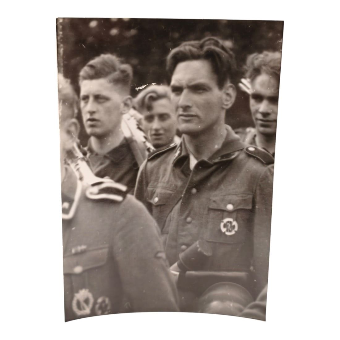 Unpublished Dutch Waffen SS Volunteer Legion Avegoor Training Center 1943 Photograph. Extremely rare unpublished photograph discovery from the Dutch Waffen SS training center in Avegoor, Netherlands. These photographs originate from the Dutch NSB fotodienst, the photograph department of the Dutch collaboration organization, National Socialist Movement during World War II. An NSB photographer traveled to the camp to photograph the Dutch volunteers during their training. Photos are roughly 2 inches x 3.25 inches.
