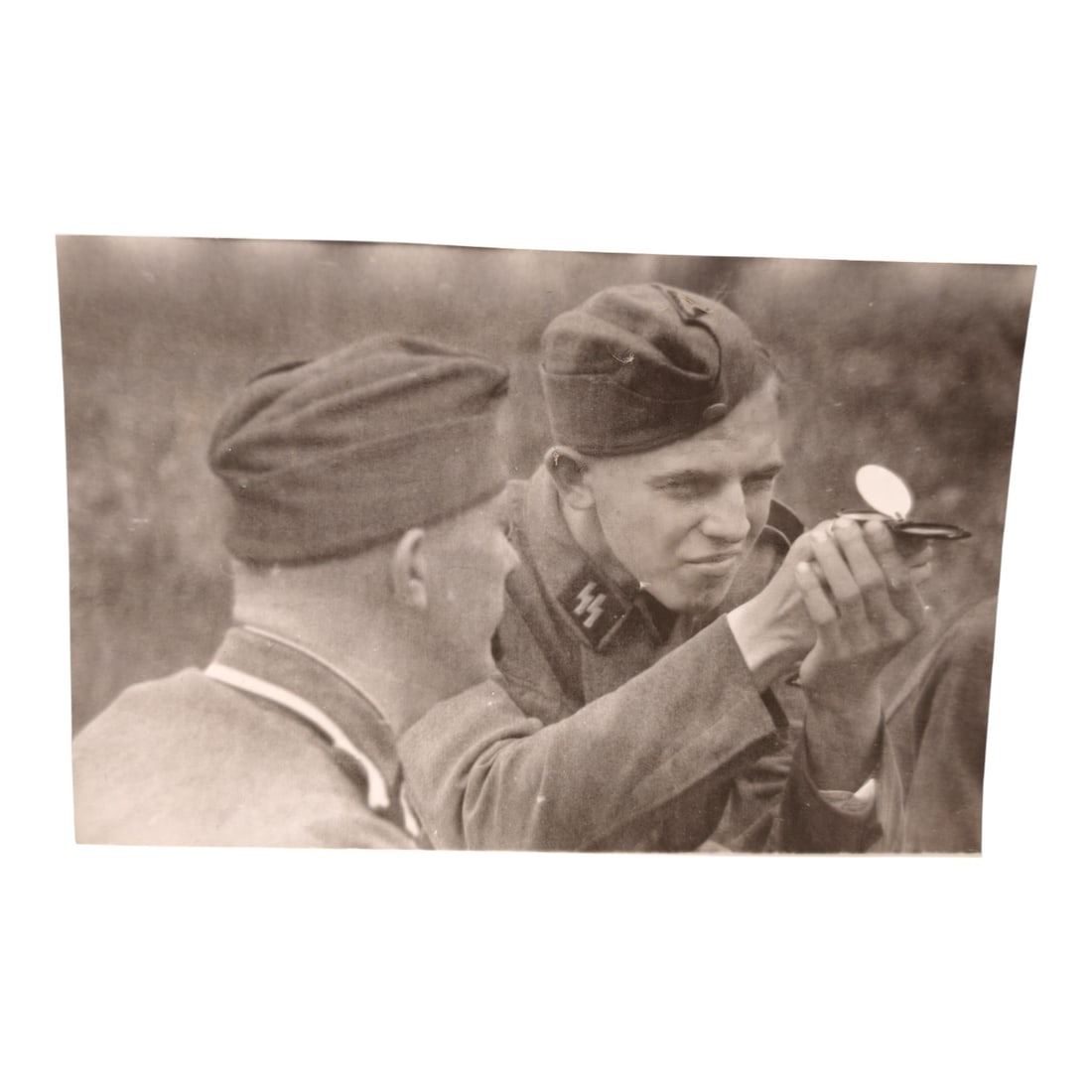 Unpublished Dutch Waffen SS Volunteer Legion Avegoor Training Center 1943 Photograph. Extremely rare unpublished photograph discovery from the Dutch Waffen SS training center in Avegoor, Netherlands. These photographs originate from the Dutch NSB fotodienst, the photograph department of the Dutch collaboration organization, National Socialist Movement during World War II. An NSB photographer traveled to the camp to photograph the Dutch volunteers during their training. Photos are roughly 2 inches x 3.25 inches.