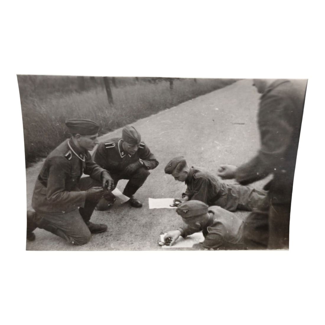 Unpublished Dutch Waffen SS Volunteer Legion Avegoor Training Center 1943 Photograph. Extremely rare unpublished photograph discovery from the Dutch Waffen SS training center in Avegoor, Netherlands. These photographs originate from the Dutch NSB fotodienst, the photograph department of the Dutch collaboration organization, National Socialist Movement during World War II. An NSB photographer traveled to the camp to photograph the Dutch volunteers during their training. Photos are roughly 2 inches x 3.25 inches.