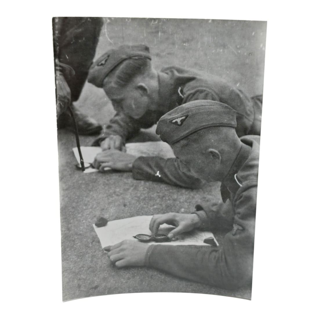 Unpublished Dutch Waffen SS Volunteer Legion Avegoor Training Center 1943 Photograph. Extremely rare unpublished photograph discovery from the Dutch Waffen SS training center in Avegoor, Netherlands. These photographs originate from the Dutch NSB fotodienst, the photograph department of the Dutch collaboration organization, National Socialist Movement during World War II. An NSB photographer traveled to the camp to photograph the Dutch volunteers during their training. Photos are roughly 2 inches x 3.25 inches.
