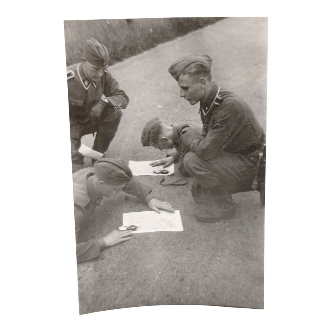 Unpublished Dutch Waffen SS Volunteer Legion Avegoor Training Center 1943 Photograph. Extremely rare unpublished photograph discovery from the Dutch Waffen SS training center in Avegoor, Netherlands. These photographs originate from the Dutch NSB fotodienst, the photograph department of the Dutch collaboration organization, National Socialist Movement during World War II. An NSB photographer traveled to the camp to photograph the Dutch volunteers during their training. Photos are roughly 2 inches x 3.25 inches.