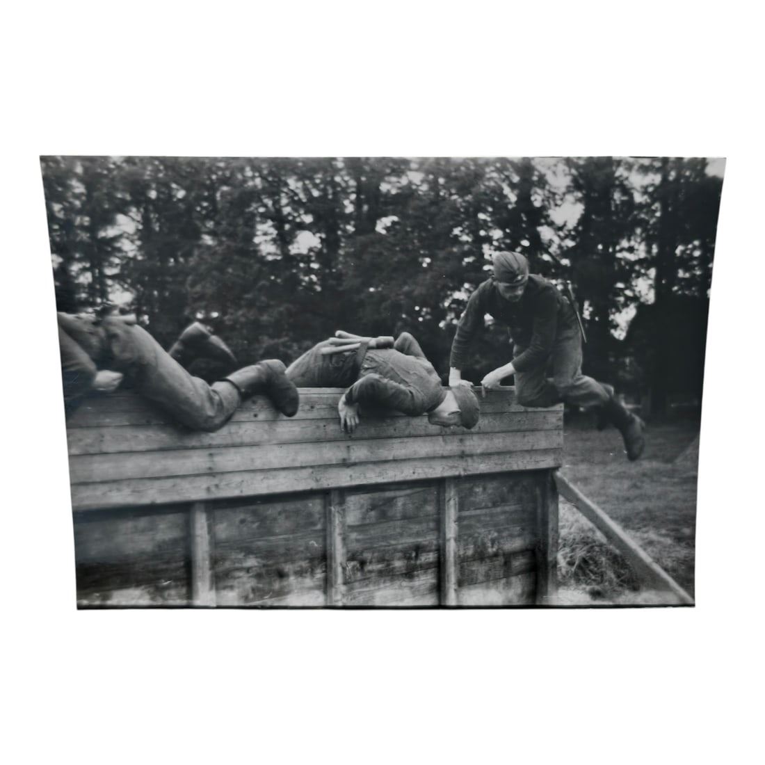 Unpublished Dutch Waffen SS Volunteer Legion Avegoor Training Center 1943 Photograph. Extremely rare unpublished photograph discovery from the Dutch Waffen SS training center in Avegoor, Netherlands. These photographs originate from the Dutch NSB fotodienst, the photograph department of the Dutch collaboration organization, National Socialist Movement during World War II. An NSB photographer traveled to the camp to photograph the Dutch volunteers during their training. Photos are roughly 2 inches x 3.25 inches.