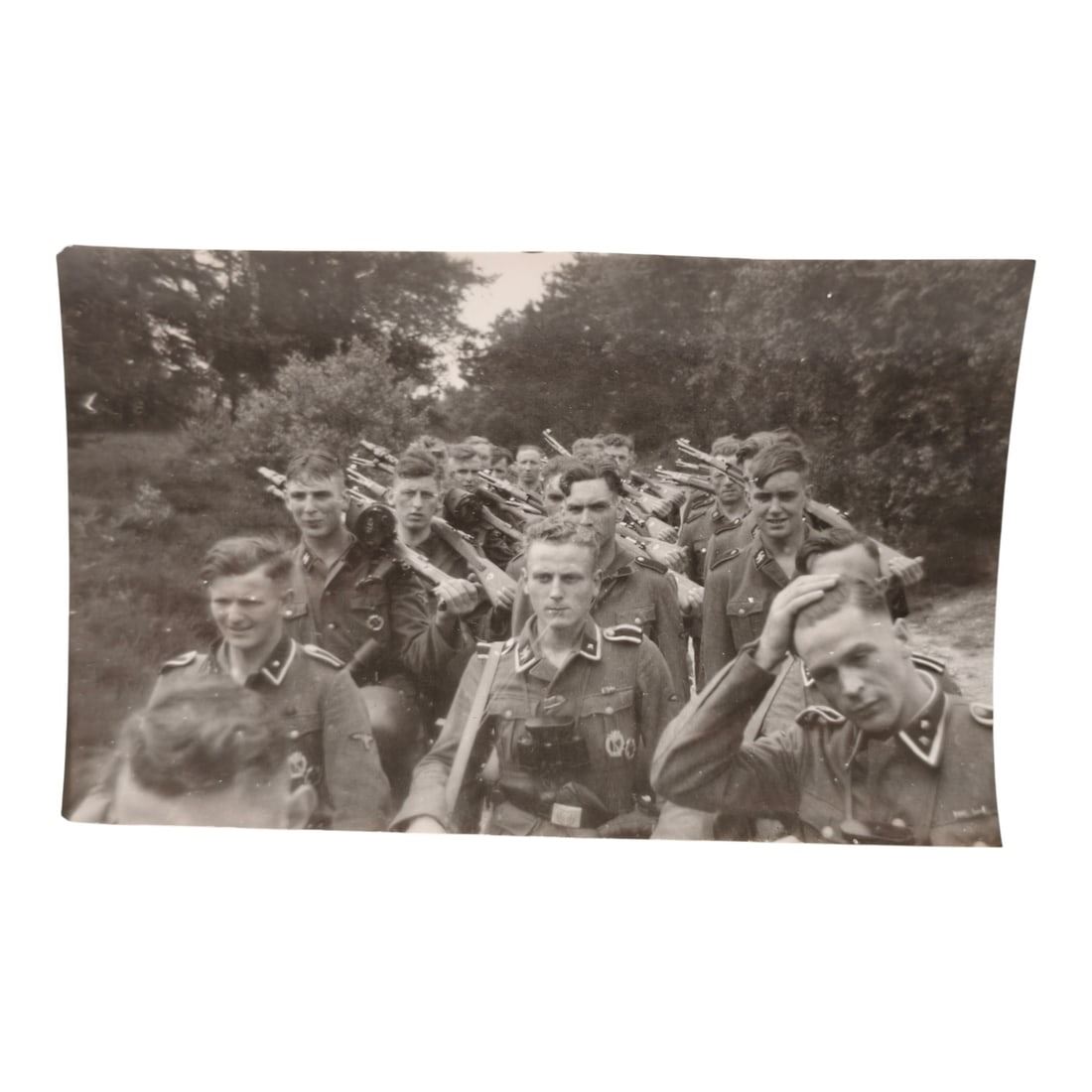 Unpublished Dutch Waffen SS Volunteer Legion Avegoor Training Center 1943 Photograph. Extremely rare unpublished photograph discovery from the Dutch Waffen SS training center in Avegoor, Netherlands. These photographs originate from the Dutch NSB fotodienst, the photograph department of the Dutch collaboration organization, National Socialist Movement during World War II. An NSB photographer traveled to the camp to photograph the Dutch volunteers during their training. Photos are roughly 2 inches x 3.25 inches.