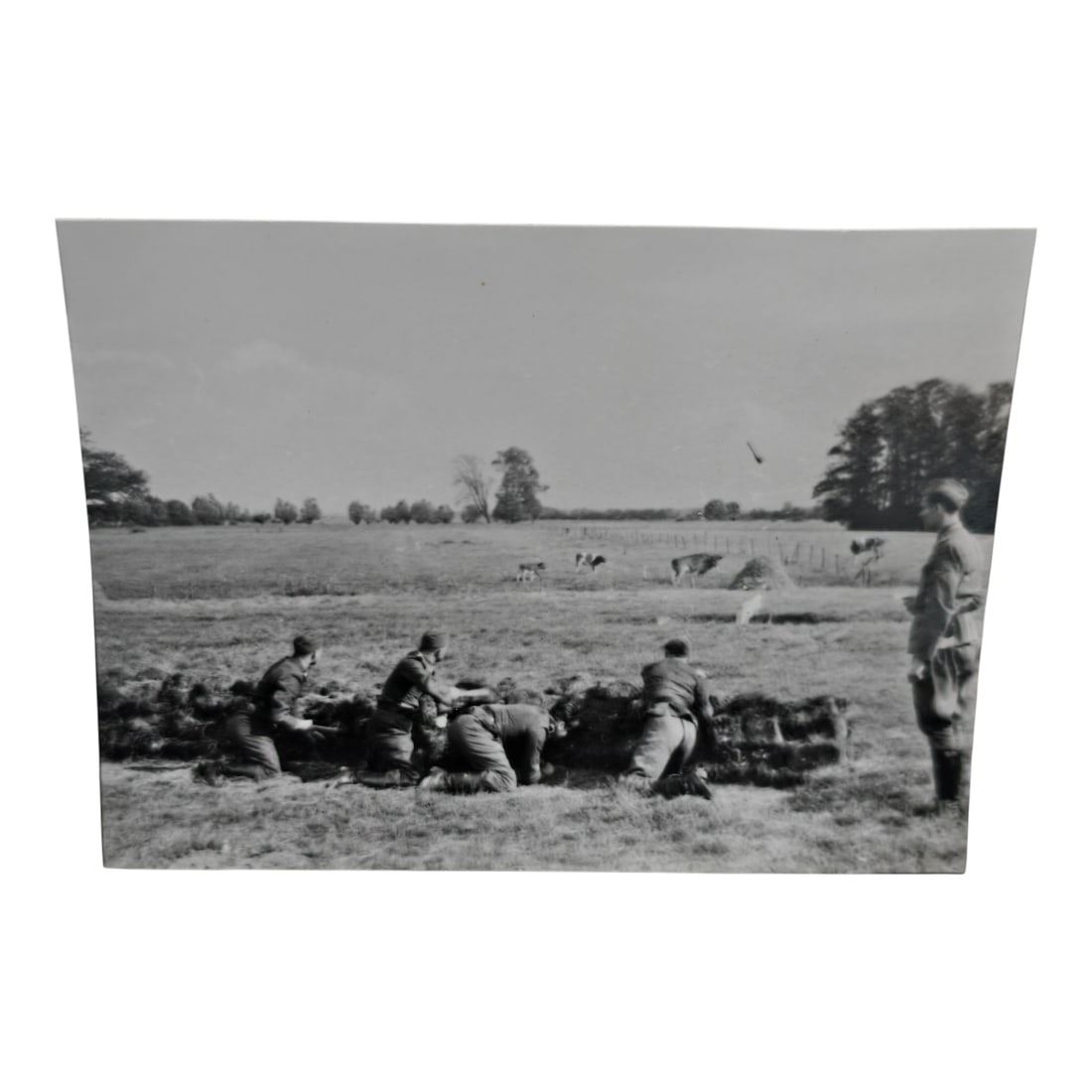 Unpublished Dutch Waffen SS Volunteer Legion Avegoor Training Center 1943 Photograph. Extremely rare unpublished photograph discovery from the Dutch Waffen SS training center in Avegoor, Netherlands. These photographs originate from the Dutch NSB fotodienst, the photograph department of the Dutch collaboration organization, National Socialist Movement during World War II. An NSB photographer traveled to the camp to photograph the Dutch volunteers during their training. Photos are roughly 2 inches x 3.25 inches.