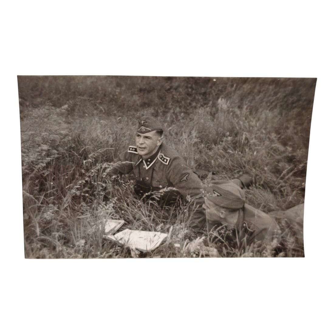 Unpublished Dutch Waffen SS Volunteer Legion Avegoor Training Center 1943 Photograph. Extremely rare unpublished photograph discovery from the Dutch Waffen SS training center in Avegoor, Netherlands. These photographs originate from the Dutch NSB fotodienst, the photograph department of the Dutch collaboration organization, National Socialist Movement during World War II. An NSB photographer traveled to the camp to photograph the Dutch volunteers during their training. Photos are roughly 2 inches x 3.25 inches.
