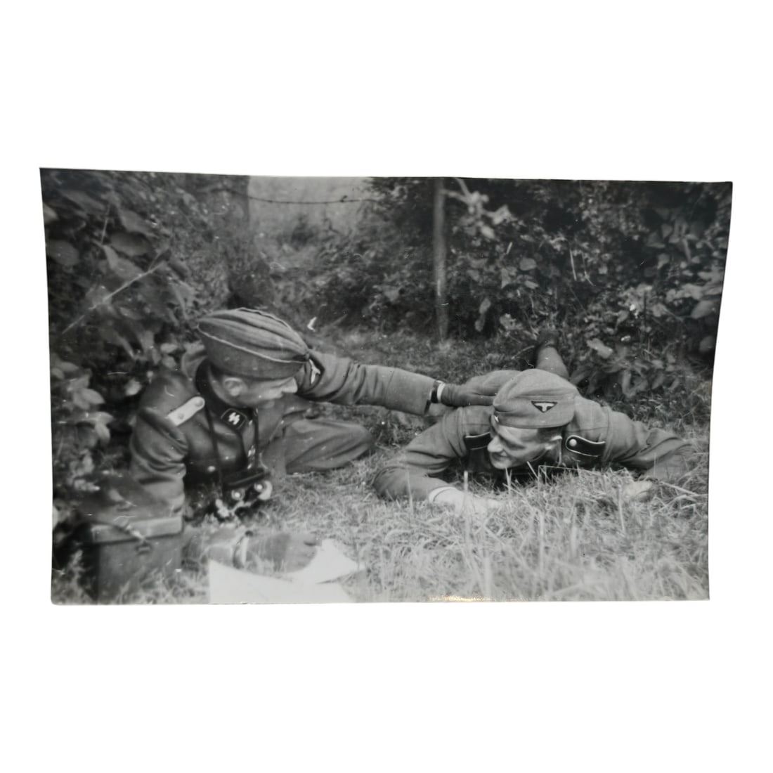 Unpublished Dutch Waffen SS Volunteer Legion Avegoor Training Center 1943 Photograph. Extremely rare unpublished photograph discovery from the Dutch Waffen SS training center in Avegoor, Netherlands. These photographs originate from the Dutch NSB fotodienst, the photograph department of the Dutch collaboration organization, National Socialist Movement during World War II. An NSB photographer traveled to the camp to photograph the Dutch volunteers during their training. Photos are roughly 2 inches x 3.25 inches.