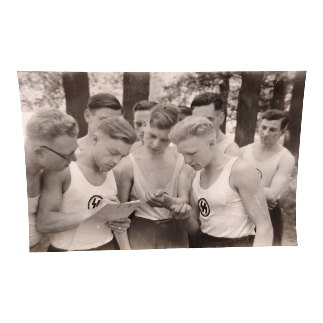 Unpublished Dutch Waffen SS Volunteer Legion Avegoor Training Center 1943 Photograph. Extremely rare unpublished photograph discovery from the Dutch Waffen SS training center in Avegoor, Netherlands. These photographs originate from the Dutch NSB fotodienst, the photograph department of the Dutch collaboration organization, National Socialist Movement during World War II. An NSB photographer traveled to the camp to photograph the Dutch volunteers during their training. Photos are roughly 2 inches x 3.25 inches.