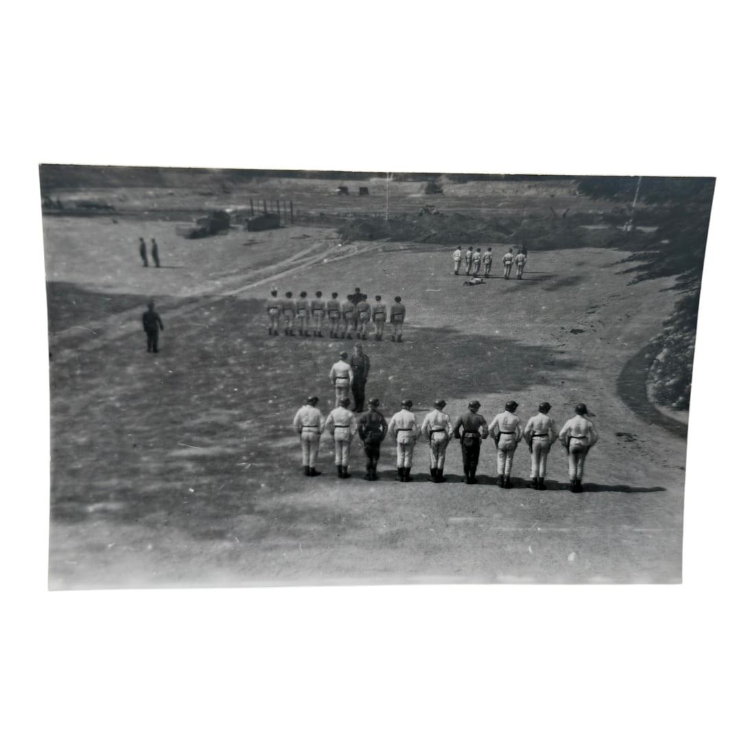 Unpublished Dutch Waffen SS Volunteer Legion Avegoor Training Center 1943 Photograph. Extremely rare unpublished photograph discovery from the Dutch Waffen SS training center in Avegoor, Netherlands. These photographs originate from the Dutch NSB fotodienst, the photograph department of the Dutch collaboration organization, National Socialist Movement during World War II. An NSB photographer traveled to the camp to photograph the Dutch volunteers during their training. Photos are roughly 2 inches x 3.25 inches.