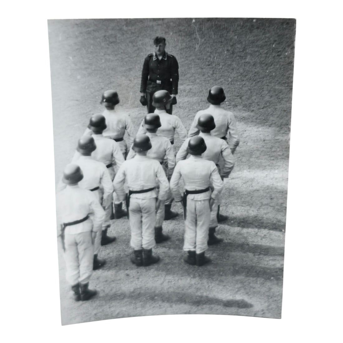 Unpublished Dutch Waffen SS Volunteer Legion Avegoor Training Center 1943 Photograph. Extremely rare unpublished photograph discovery from the Dutch Waffen SS training center in Avegoor, Netherlands. These photographs originate from the Dutch NSB fotodienst, the photograph department of the Dutch collaboration organization, National Socialist Movement during World War II. An NSB photographer traveled to the camp to photograph the Dutch volunteers during their training. Photos are roughly 2 inches x 3.25 inches.