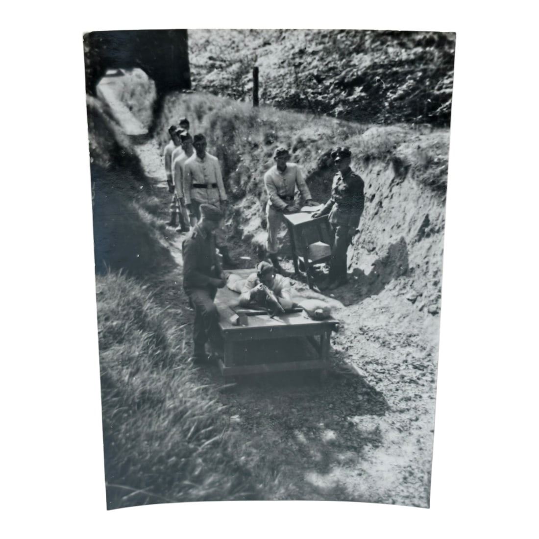 Unpublished Dutch Waffen SS Volunteer Legion Avegoor Training Center 1943 Photograph. Extremely rare unpublished photograph discovery from the Dutch Waffen SS training center in Avegoor, Netherlands. These photographs originate from the Dutch NSB fotodienst, the photograph department of the Dutch collaboration organization, National Socialist Movement during World War II. An NSB photographer traveled to the camp to photograph the Dutch volunteers during their training. Photos are roughly 2 inches x 3.25 inches.