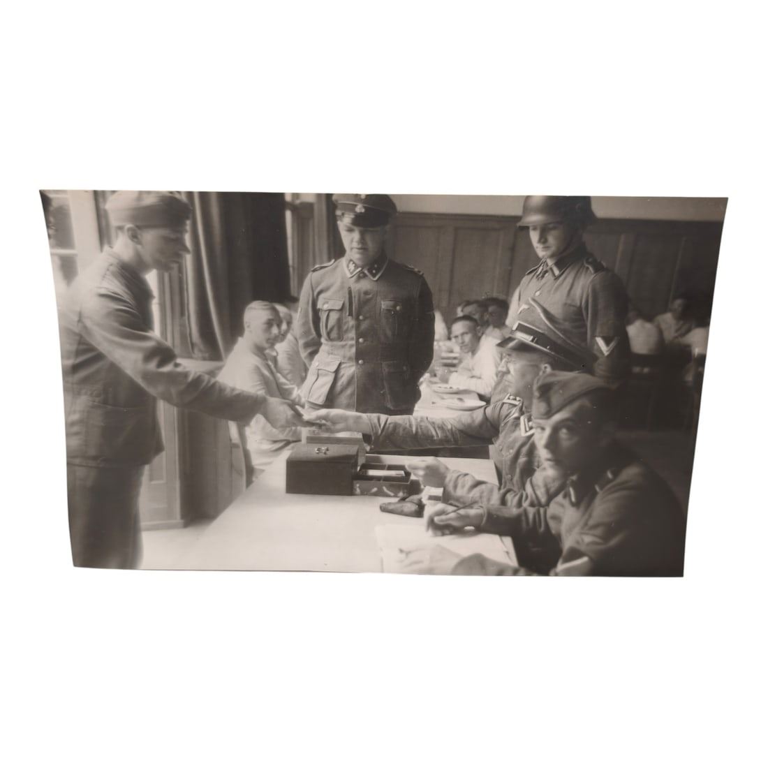 Unpublished Dutch Waffen SS Volunteer Legion Avegoor Training Center 1943 Photograph. Extremely rare unpublished photograph discovery from the Dutch Waffen SS training center in Avegoor, Netherlands. These photographs originate from the Dutch NSB fotodienst, the photograph department of the Dutch collaboration organization, National Socialist Movement during World War II. An NSB photographer traveled to the camp to photograph the Dutch volunteers during their training. Photos are roughly 2 inches x 3.25 inches.