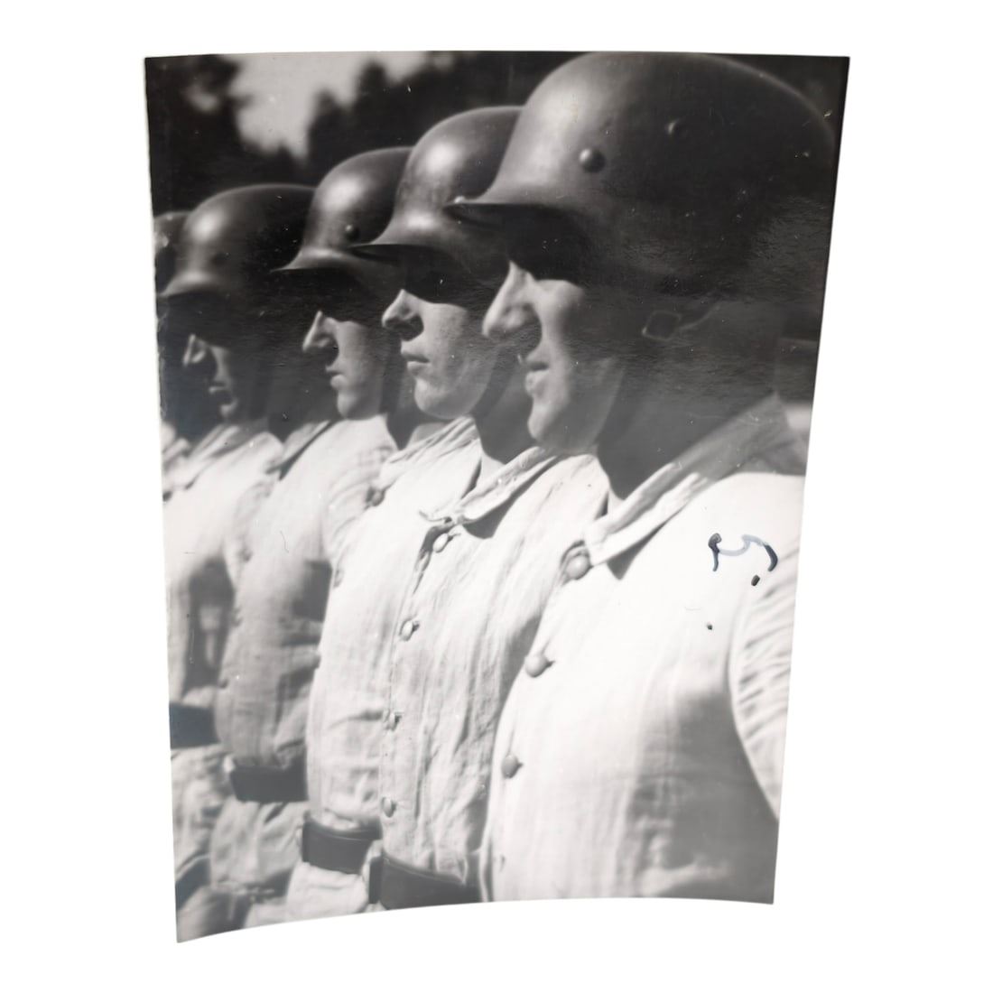Unpublished Dutch Waffen SS Volunteer Legion Avegoor Training Center 1943 Photograph. Extremely rare unpublished photograph discovery from the Dutch Waffen SS training center in Avegoor, Netherlands. These photographs originate from the Dutch NSB fotodienst, the photograph department of the Dutch collaboration organization, National Socialist Movement during World War II. An NSB photographer traveled to the camp to photograph the Dutch volunteers during their training. Photos are roughly 2 inches x 3.25 inches.