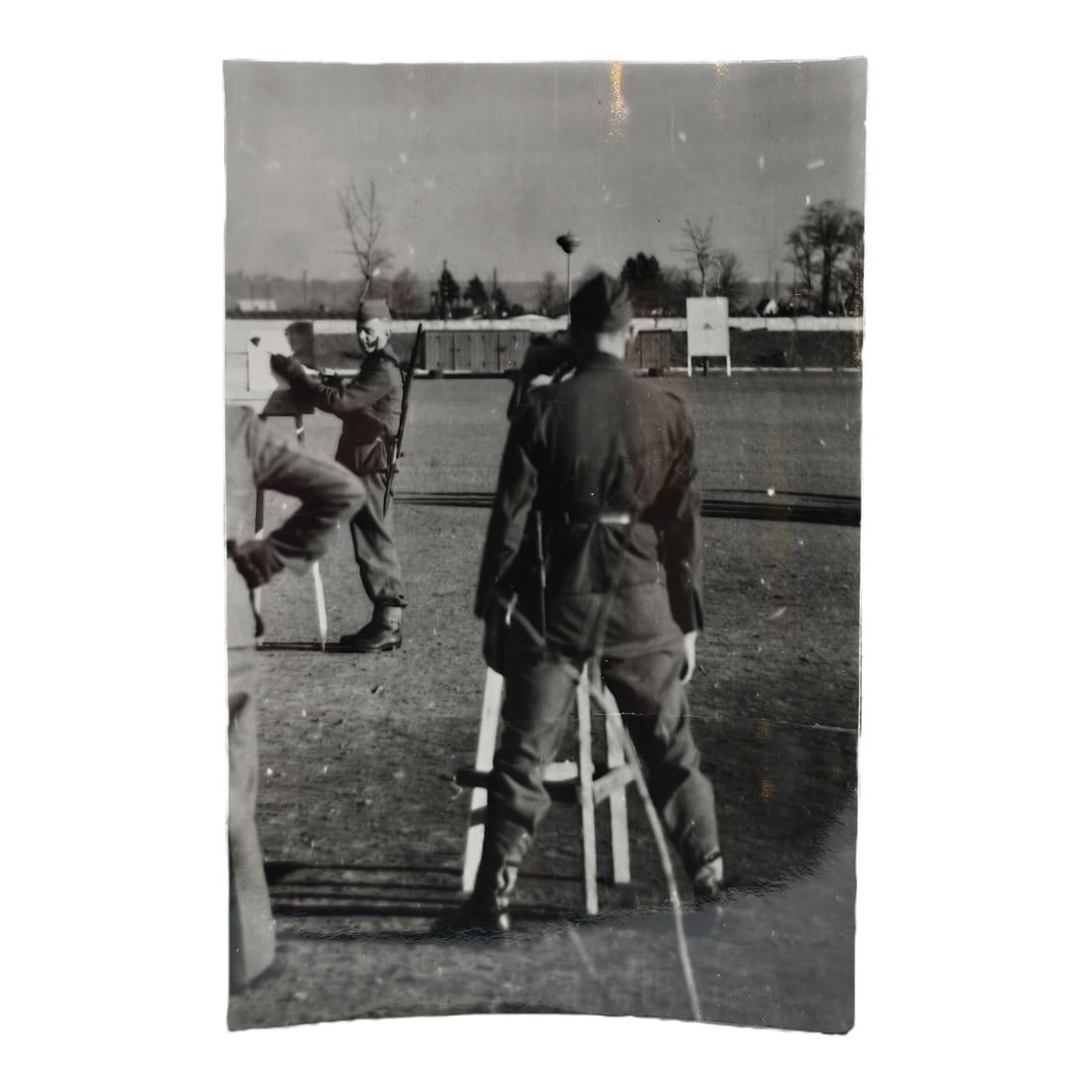 Unpublished Dutch Waffen SS Volunteer Legion Graz Training Center 1942 Photograph. Extremely rare unpublished photograph discovery from the Dutch Waffen SS training center in Graz, Austria. These photographs originate from the Dutch NSB fotodienst, the photograph department of the Dutch collaboration organization, National Socialist Movement during World War II. An NSB photographer traveled to Graz to photograph the Dutch volunteers during their training. Photos are roughly 2 inches x 3.25 inches.