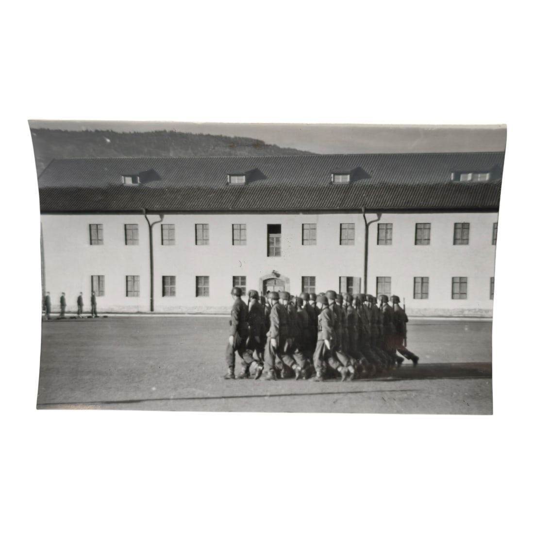 Unpublished Dutch Waffen SS Volunteer Legion Graz Training Center 1942 Photograph. Extremely rare unpublished photograph discovery from the Dutch Waffen SS training center in Graz, Austria. These photographs originate from the Dutch NSB fotodienst, the photograph department of the Dutch collaboration organization, National Socialist Movement during World War II. An NSB photographer traveled to Graz to photograph the Dutch volunteers during their training. Photos are roughly 2 inches x 3.25 inches.