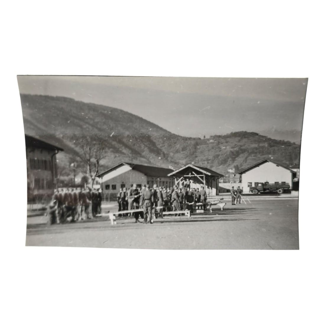 Unpublished Dutch Waffen SS Volunteer Legion Graz Training Center 1942 Photograph. Extremely rare unpublished photograph discovery from the Dutch Waffen SS training center in Graz, Austria. These photographs originate from the Dutch NSB fotodienst, the photograph department of the Dutch collaboration organization, National Socialist Movement during World War II. An NSB photographer traveled to Graz to photograph the Dutch volunteers during their training. Photos are roughly 2 inches x 3.25 inches.