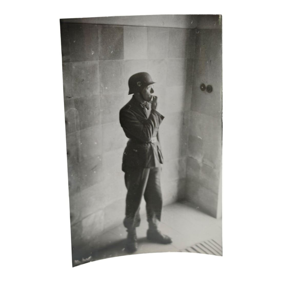 Unpublished Dutch Waffen SS Volunteer Legion Graz Training Center 1942 Photograph. Extremely rare unpublished photograph discovery from the Dutch Waffen SS training center in Graz, Austria. These photographs originate from the Dutch NSB fotodienst, the photograph department of the Dutch collaboration organization, National Socialist Movement during World War II. An NSB photographer traveled to Graz to photograph the Dutch volunteers during their training. Photos are roughly 2 inches x 3.25 inches.