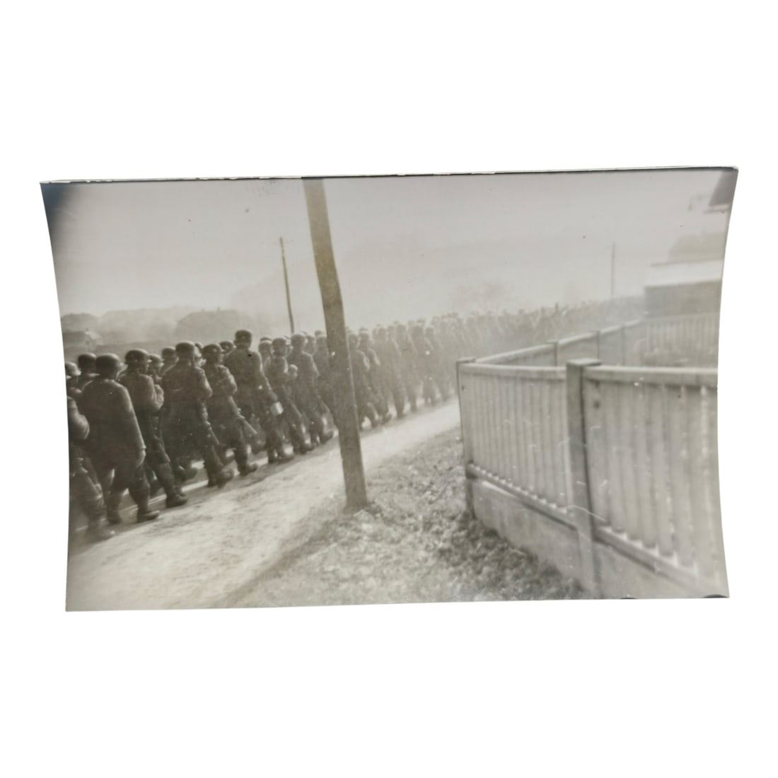 Unpublished Dutch Waffen SS Volunteer Legion Graz Training Center 1942 Photograph. Extremely rare unpublished photograph discovery from the Dutch Waffen SS training center in Graz, Austria. These photographs originate from the Dutch NSB fotodienst, the photograph department of the Dutch collaboration organization, National Socialist Movement during World War II. An NSB photographer traveled to Graz to photograph the Dutch volunteers during their training. Photos are roughly 2 inches x 3.25 inches.