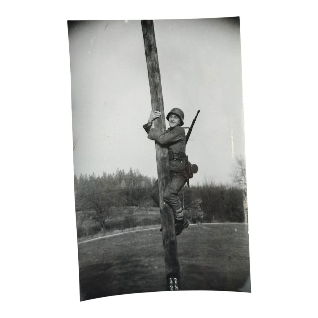 Unpublished Dutch Waffen SS Volunteer Legion Graz Training Center 1942 Photograph. Extremely rare unpublished photograph discovery from the Dutch Waffen SS training center in Graz, Austria. These photographs originate from the Dutch NSB fotodienst, the photograph department of the Dutch collaboration organization, National Socialist Movement during World War II. An NSB photographer traveled to Graz to photograph the Dutch volunteers during their training. Photos are roughly 2 inches x 3.25 inches.