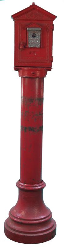 Unrestored Red Fire Box On Pedestal - About 70" Tall