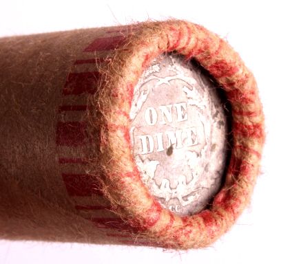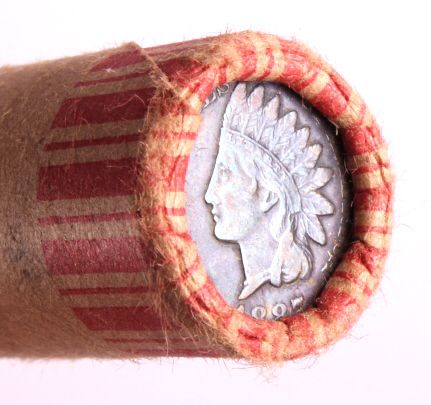 This is an unsearched roll of pennies. One end of the roll shows the obverse of an Indian Head penny. The other end shows the reverse of a Liberty dime. It's anyone's guess what is in between!. The penny roll in is good condition.