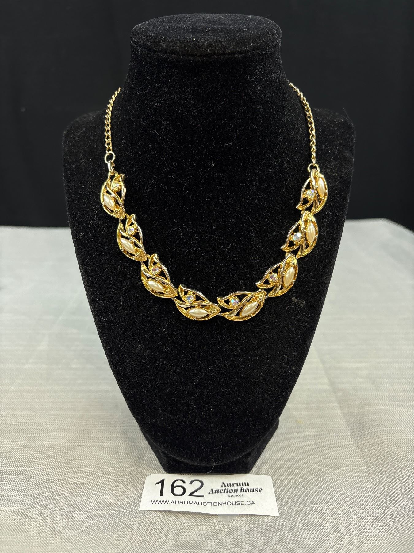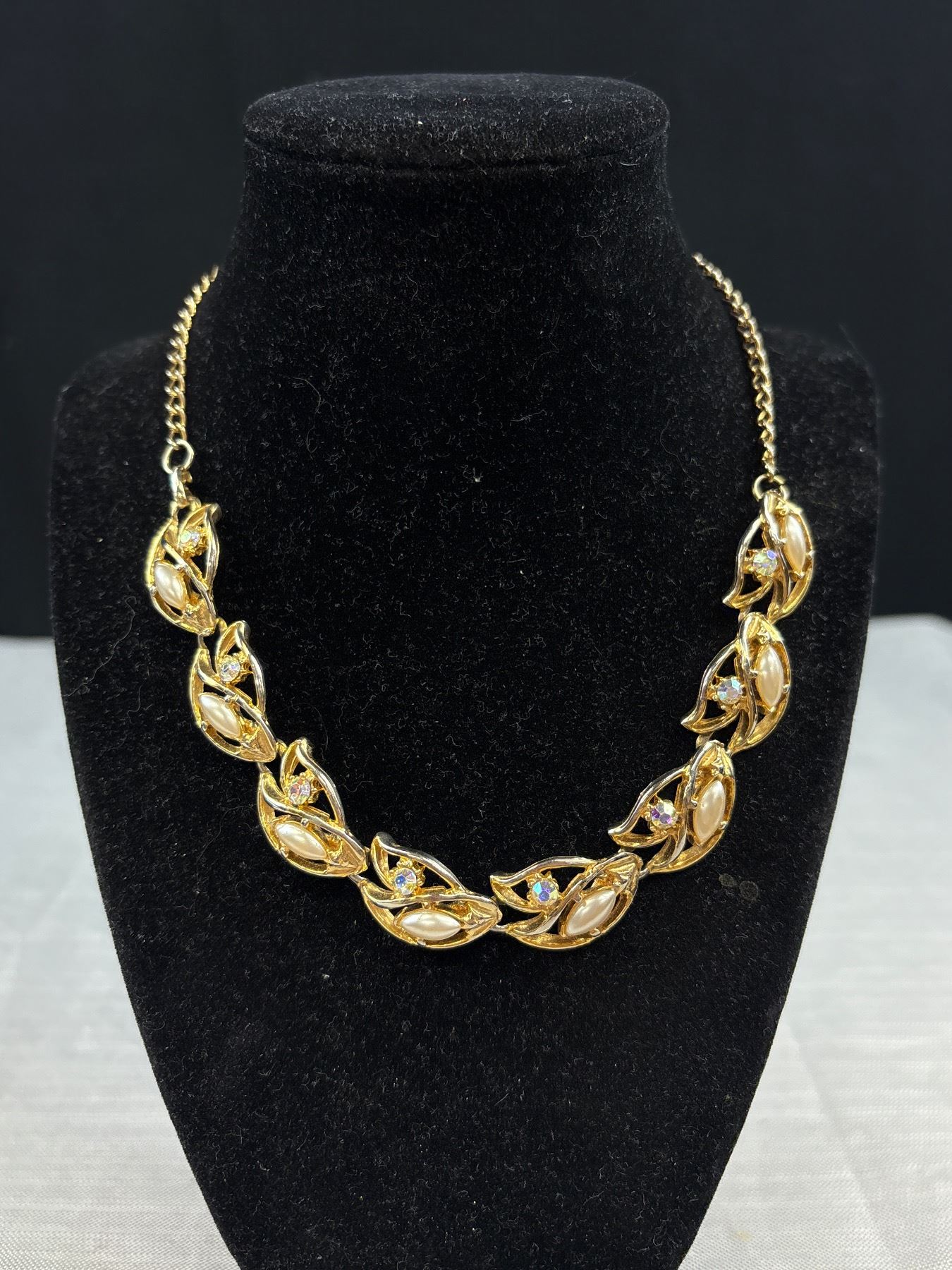 Unsigned Coro C.1950s Rhinestone Pearl Necklace