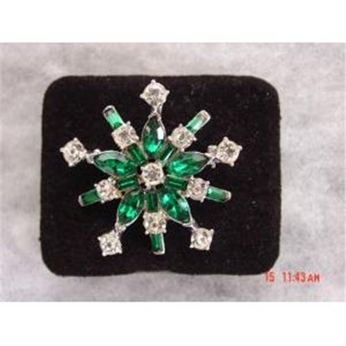 Here is a Art Deco 1920-1940s or so green emerald and clear rhinestone brooch. I'm thinking this is an unsigned JOMAZ, It looks sterling to me! Excellent conditon, star shape