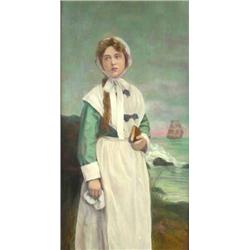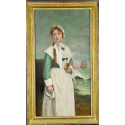 Unsigned. Oil on Board. Woman on Shore. 34" x 18". Estimate $400 - $600.