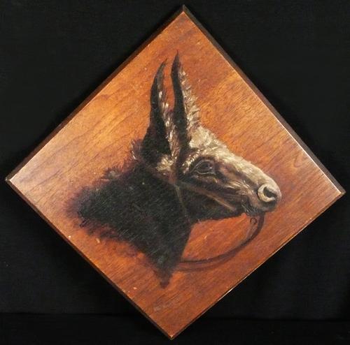 Unsigned Oil on Board Mule portrait 13 1/2" x 13 1/2"