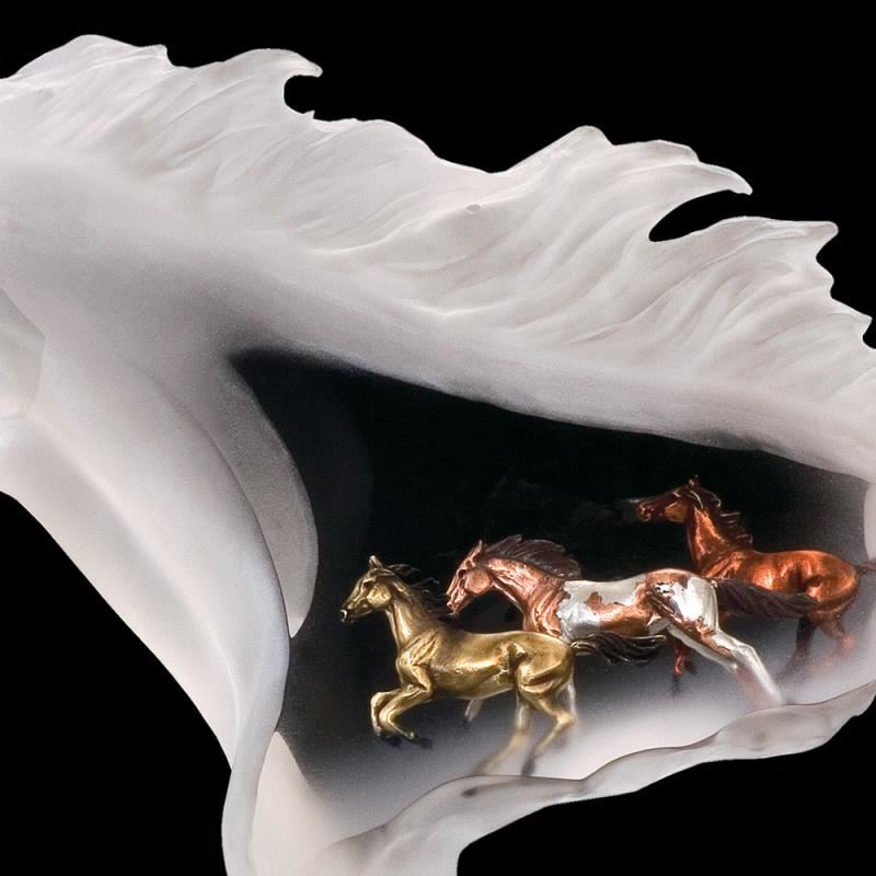 "Untamed Spirit" is a limited edition mixed media lucite sculpture by Kitty Cantrell. Engraved with the artists signature and number, this piece comes with a certificate of authenticity. Measures approximately 14" x 5" x 11". This item requires special handling and may have a longer than usual turnaround.