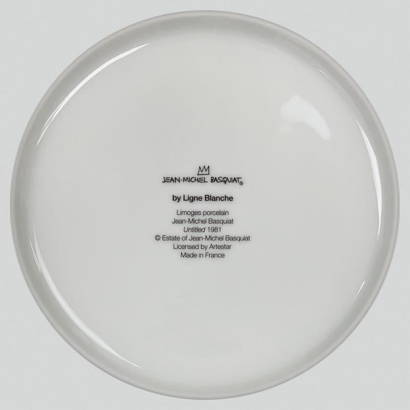 "Untitled 1981" is a Limoges porcelain plate bearing the plate signature inverso of Jean-Michel Basquiat (1960-1988). This plate is custom framed and floated on linen. Measures approx. 16" x 16" (frame), 11" (plate diameter). This item requires special handling and may have a longer than usual turnaround.